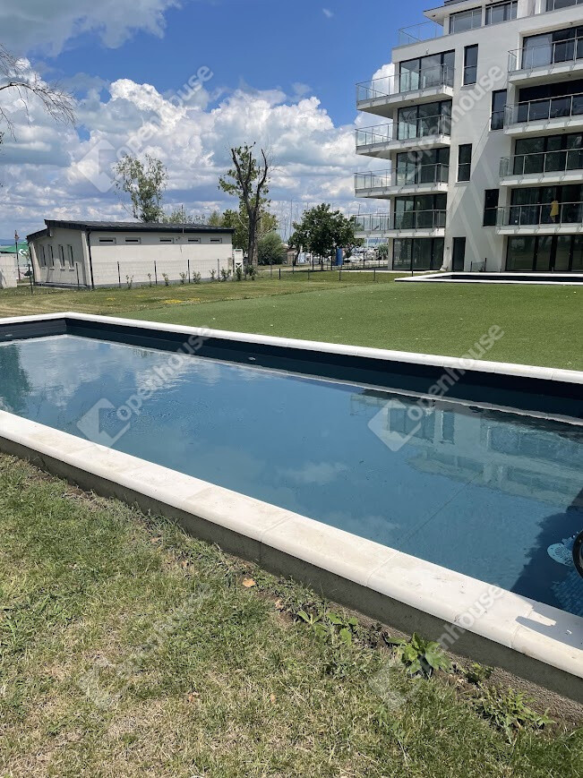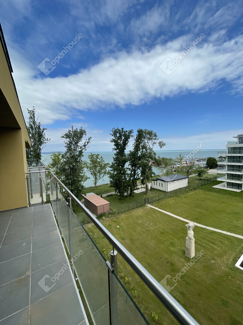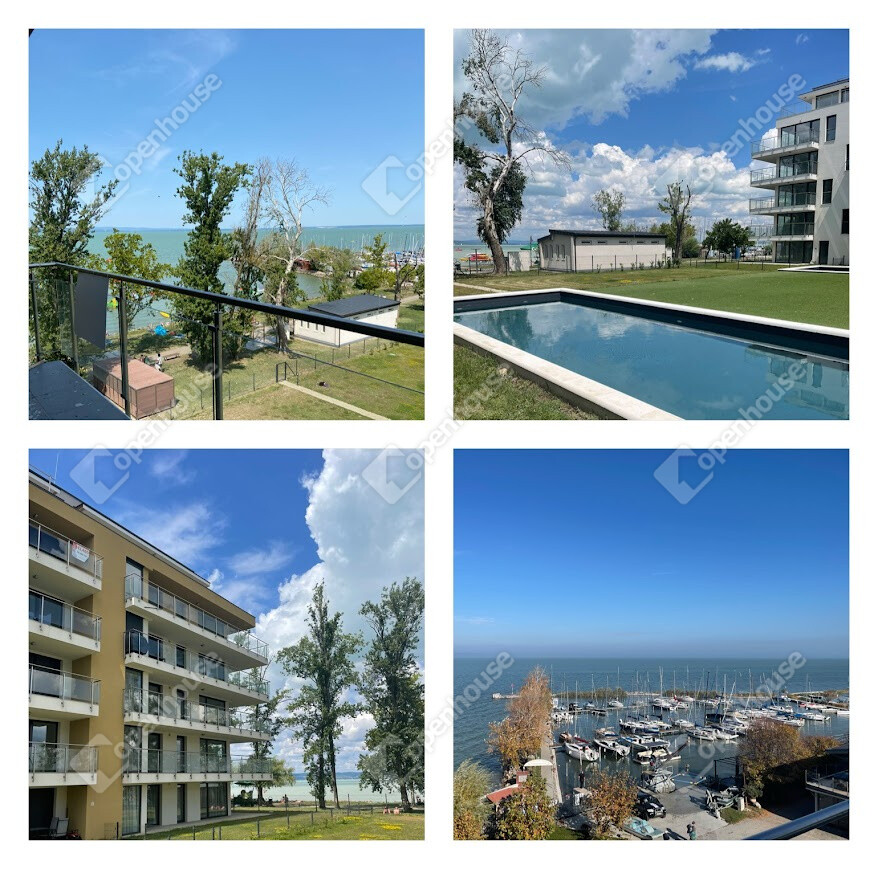 Eladó egy modern, azonnal költözhető, vízparti lakás Siófok legszebb részén, az Ezüstparton – medencés társasházban, 12 m²-es panorámás erkéllyel, felszíni parkolóval, teljes Balaton-élménnyel!