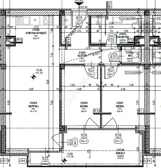 Bruttó 68 m², ebből nettó 62 m² + 12 m² erkély