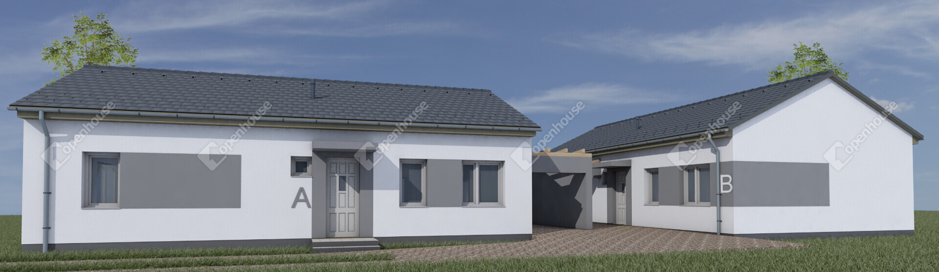 Több telken, különböző fekvéssel épülnek meg a 2, 3 illetve 4 szoba+nappalis ikerházak, melyekhez saját pergolás gépkocsibeállók tartoznak.
