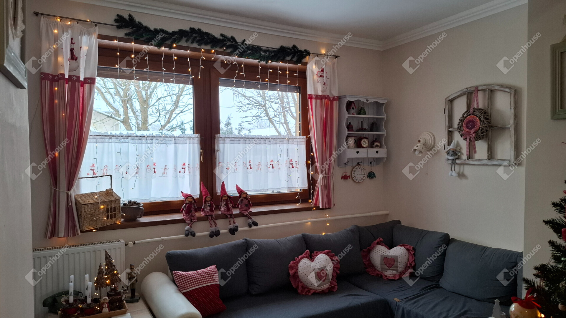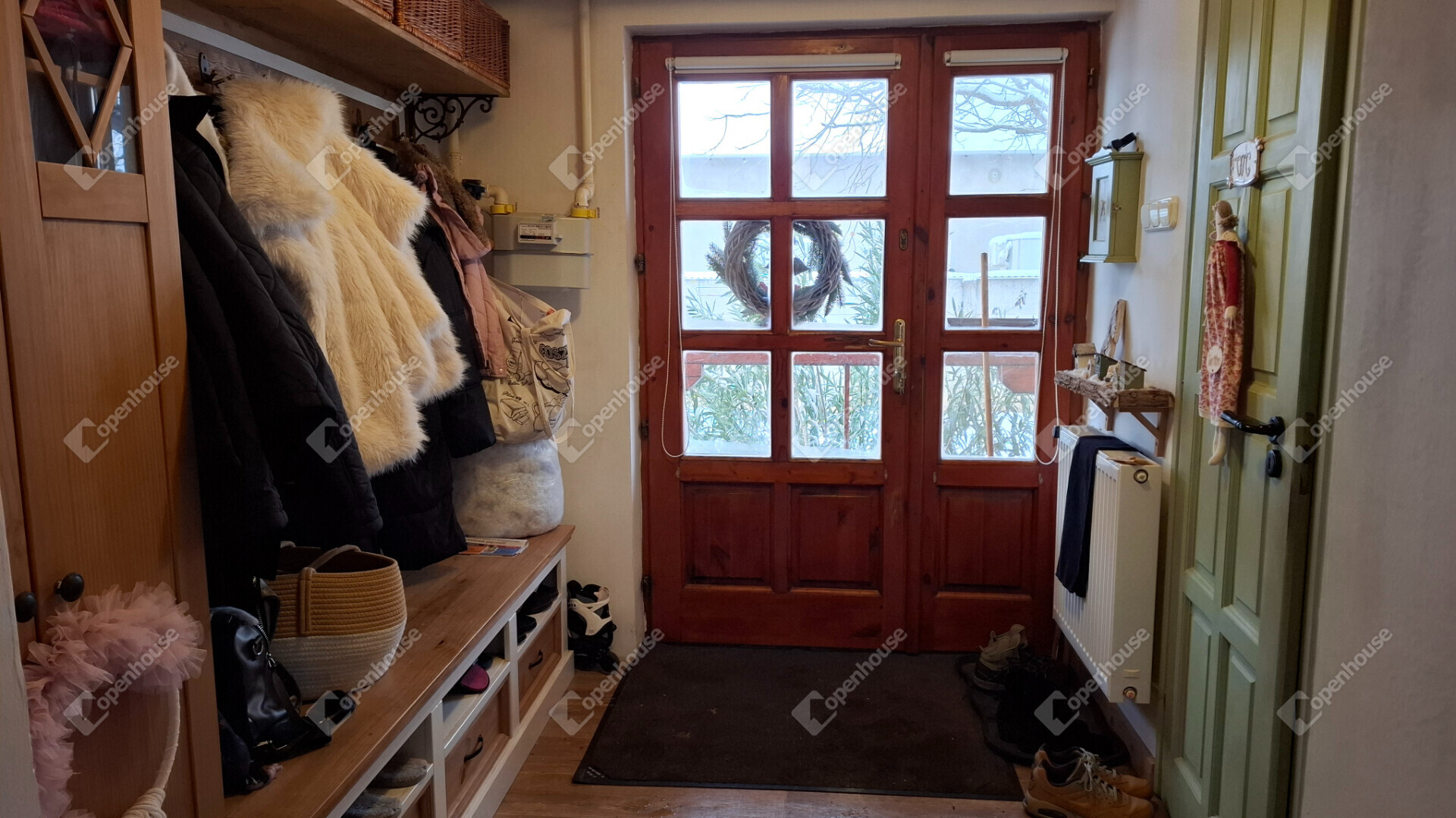 Háromrétegű üveggel szerelt aranytölgy színű műanyag nyílászárók rovarhálókkal, és alumínium elektromos redőnyök vannak az ingatlanon, melyek hőszigeteltek.