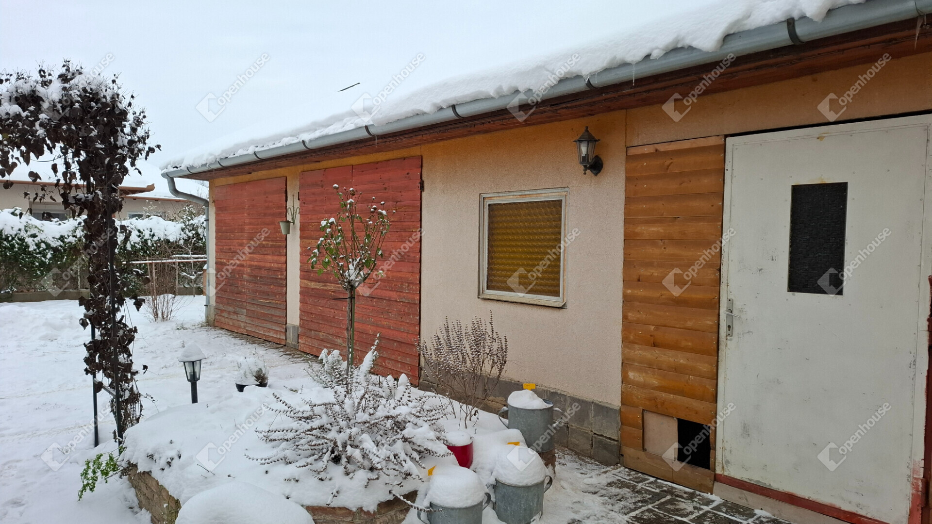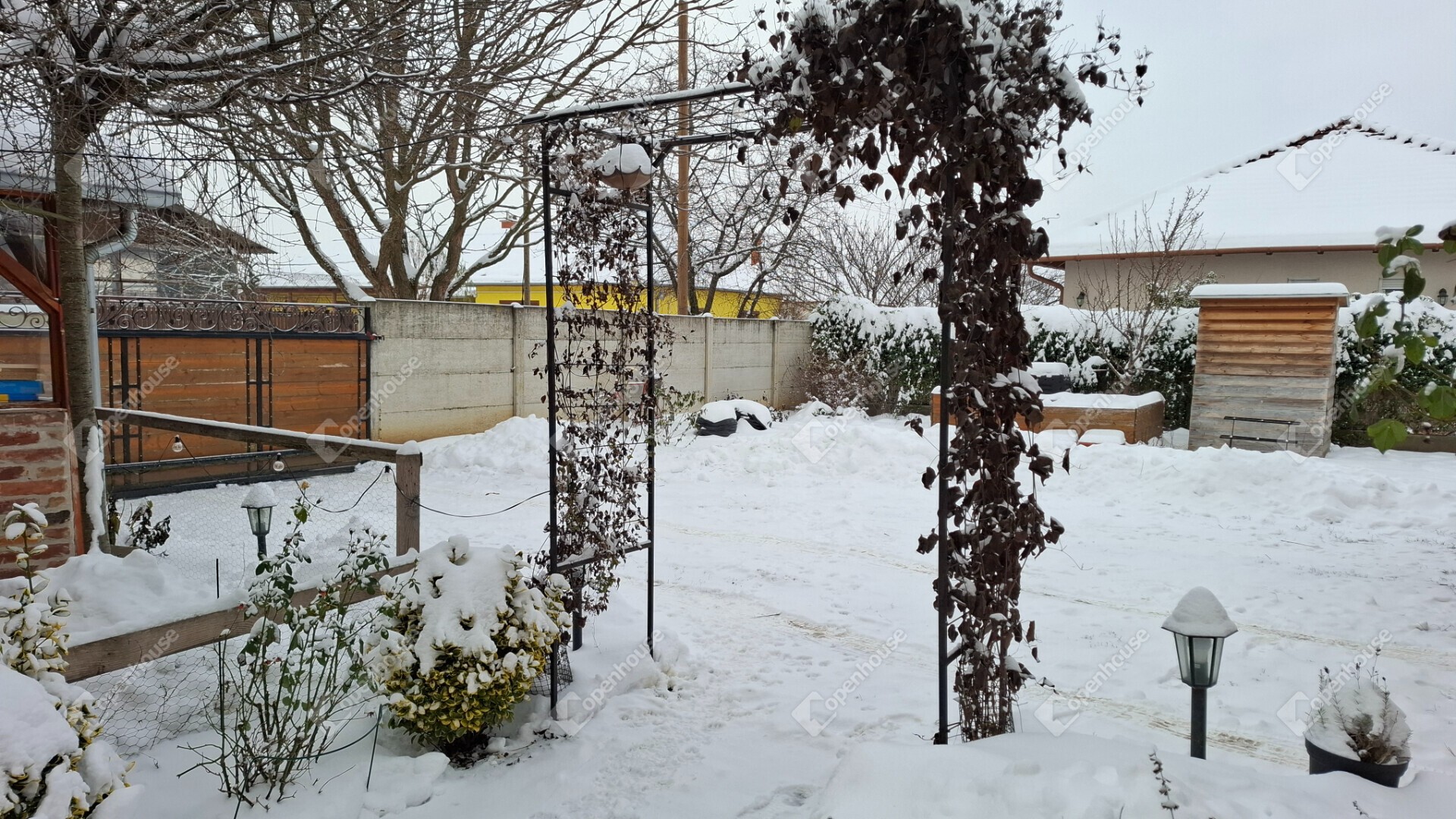 A telek területe 650 négyzetméter, hangulatos előkertje fákkal, növényekkel beültetve, hátsó részén gyümölcsfák, magas ágyások.