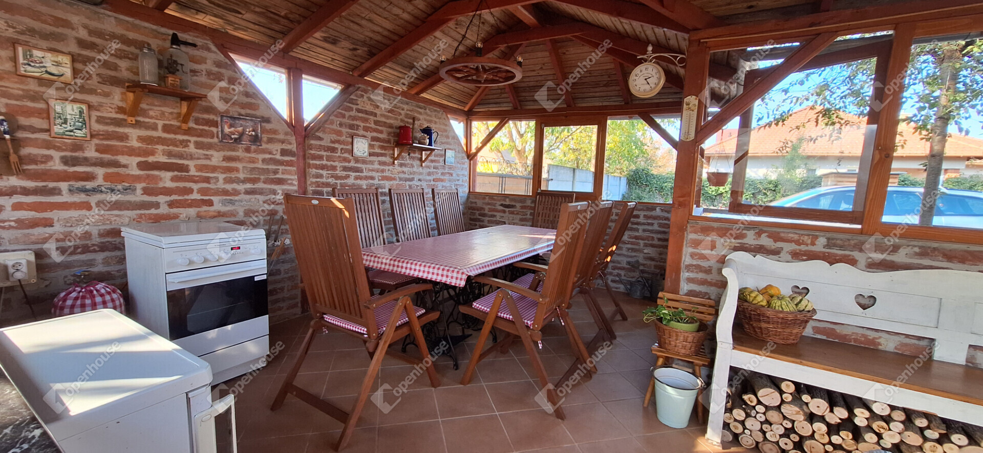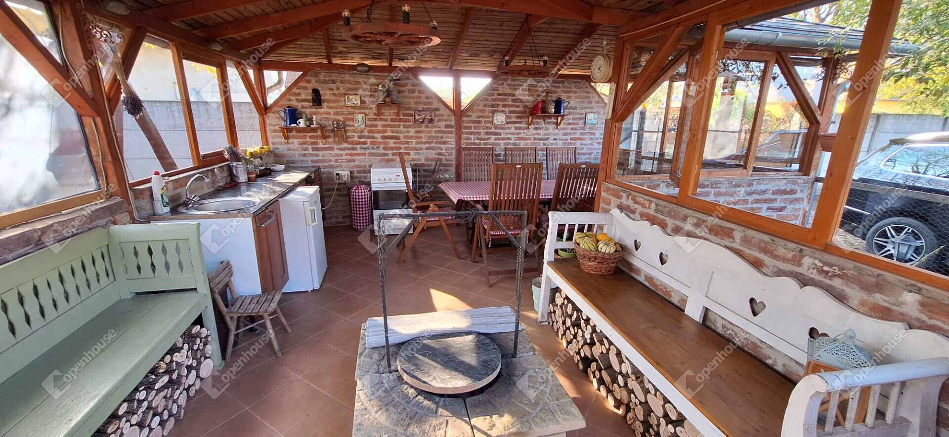 Épült a telken egy minden igényt kielégítő, berendezett filagória, rendelkezik fúrt kúttal.