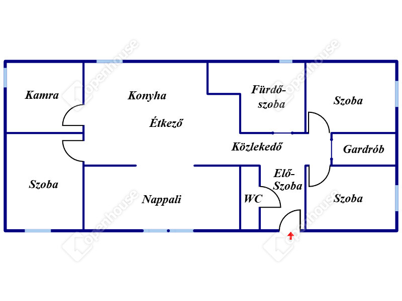 | Előszoba | 5.00 m2 | Laminált padló |