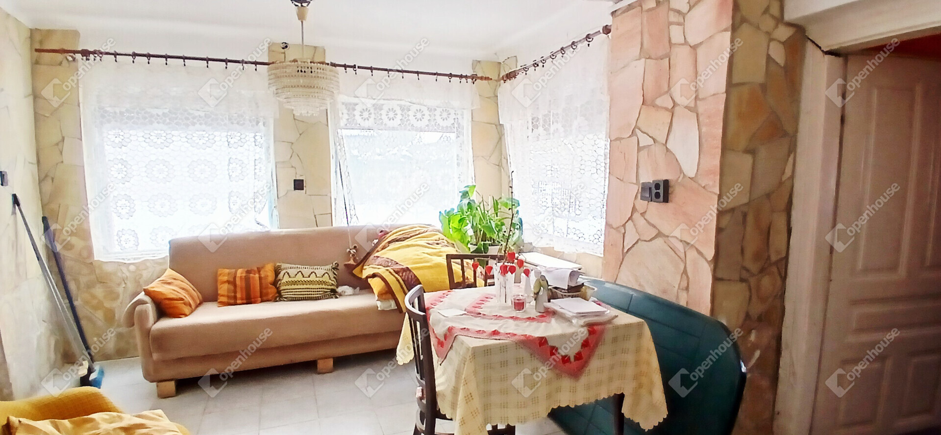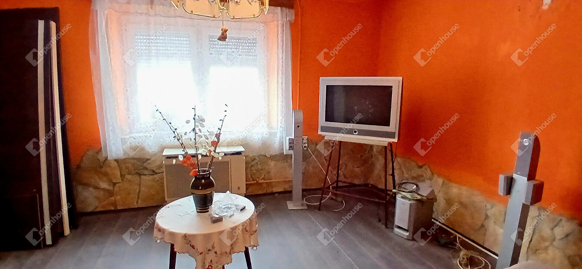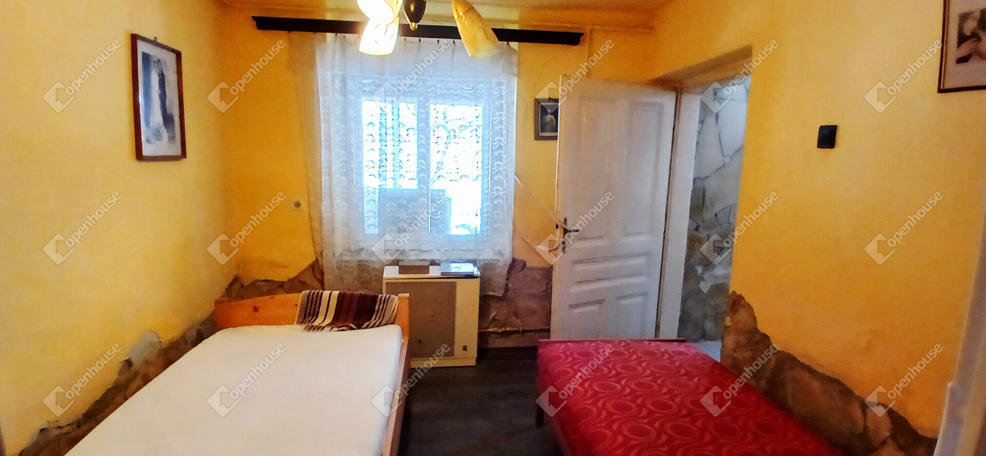 A ház elrendezése praktikus és otthonos, az előszobából a konyhába és a két szobába jutunk, a hálószobából pedig közvetlenül nyílik a tusolóval és WC-vel ellátott fürdőszoba. A stukatúr födém, a cserépfedés és a részben megmaradt eredeti fa nyílászárók a régi parasztházak varázsát idézik, miközben a laminált padló és a műanyag ablakok már a kényelmet szolgálják. A fűtésről gázkonvektor gondoskodik, de egy cserépkályha is rendelkezésre áll, amely nemcsak meleget, hanem igazi vidéki hangulatot is ad a téli estéken.
