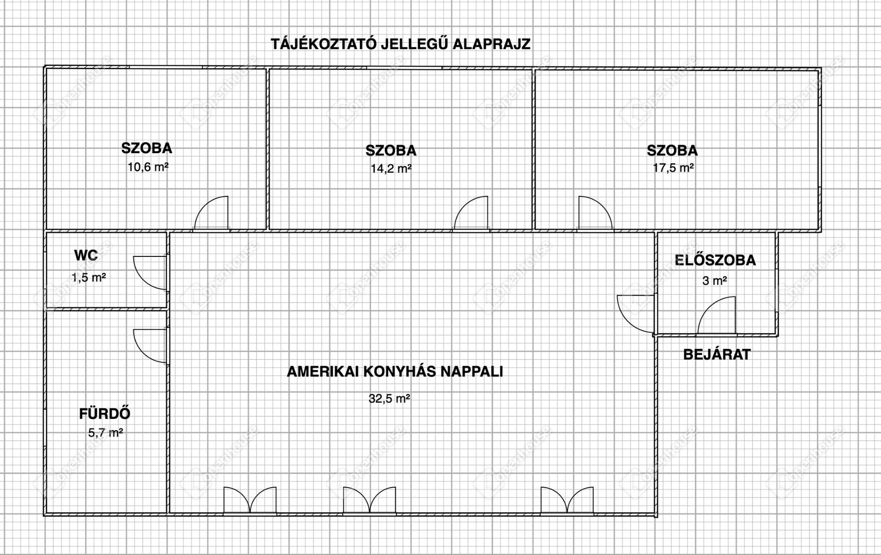 | Amerikai konyha | 32.50 m2 | Járólap |