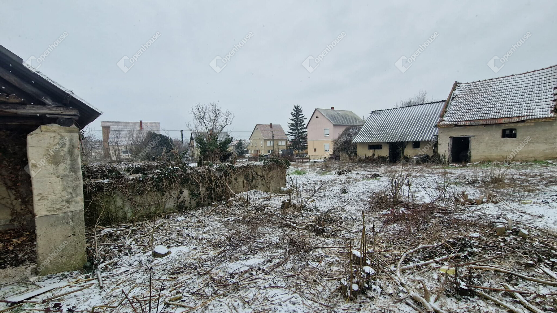 A 1987 nm-es telken egy 70 nm alapterületű, teljes körű felújítást igénylő családi ház valamint 177 nm-es melléképület-együttes található.