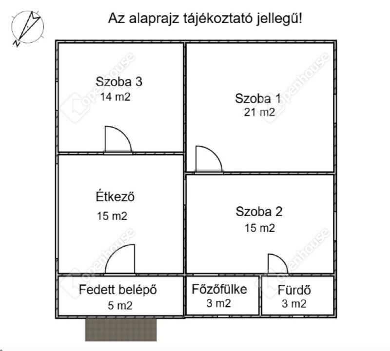 | Szoba | 21.00 m2 | Padlószőnyeg |