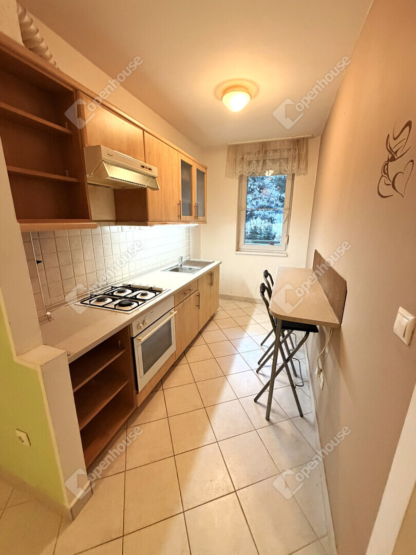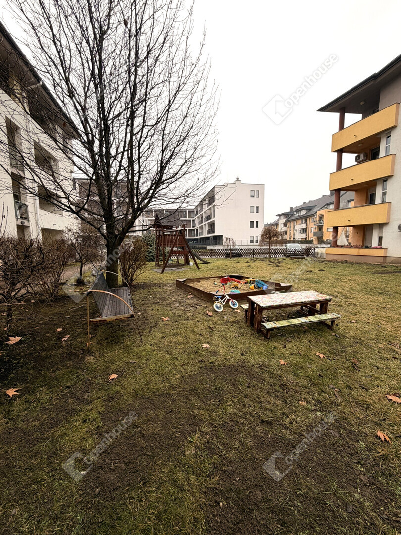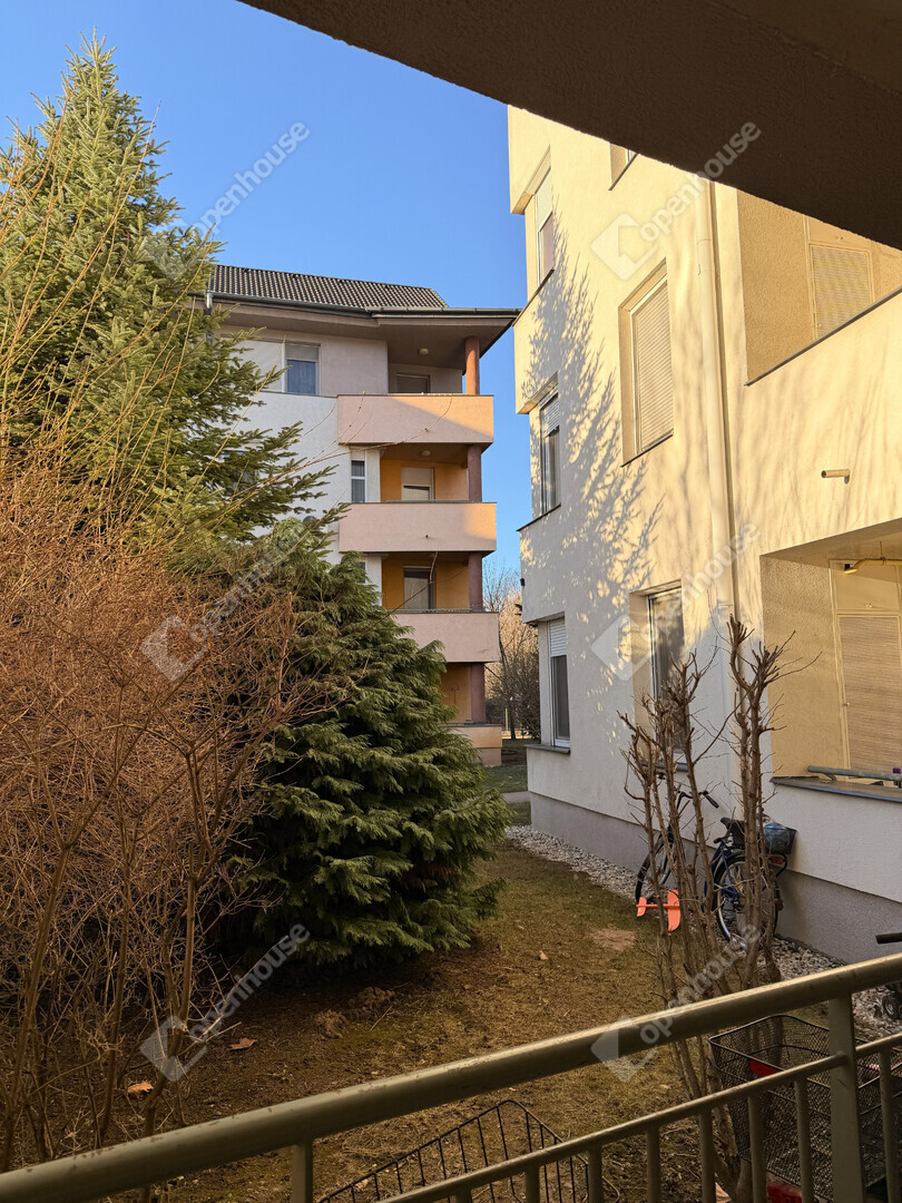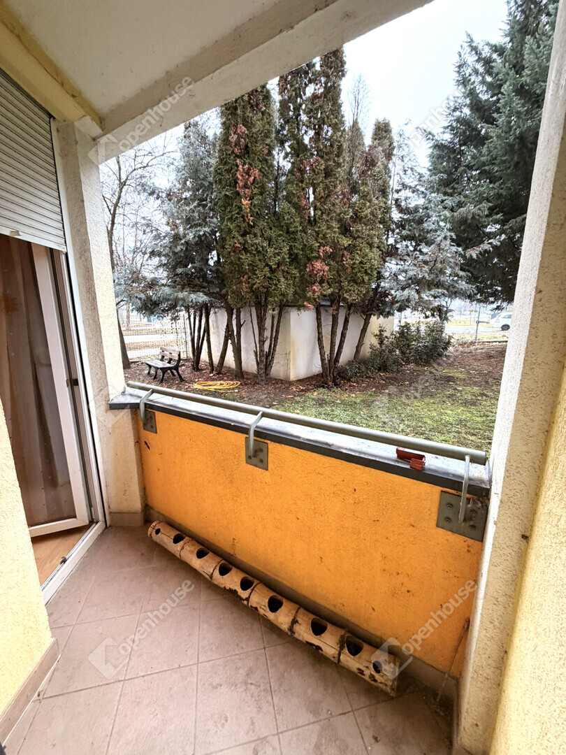 A nagyobb szobából egy 1,5 m²-es loggia nyílik, ahonnan a társasház parkosított, fákkal és paddal kialakított kertjére nyílik kilátás.