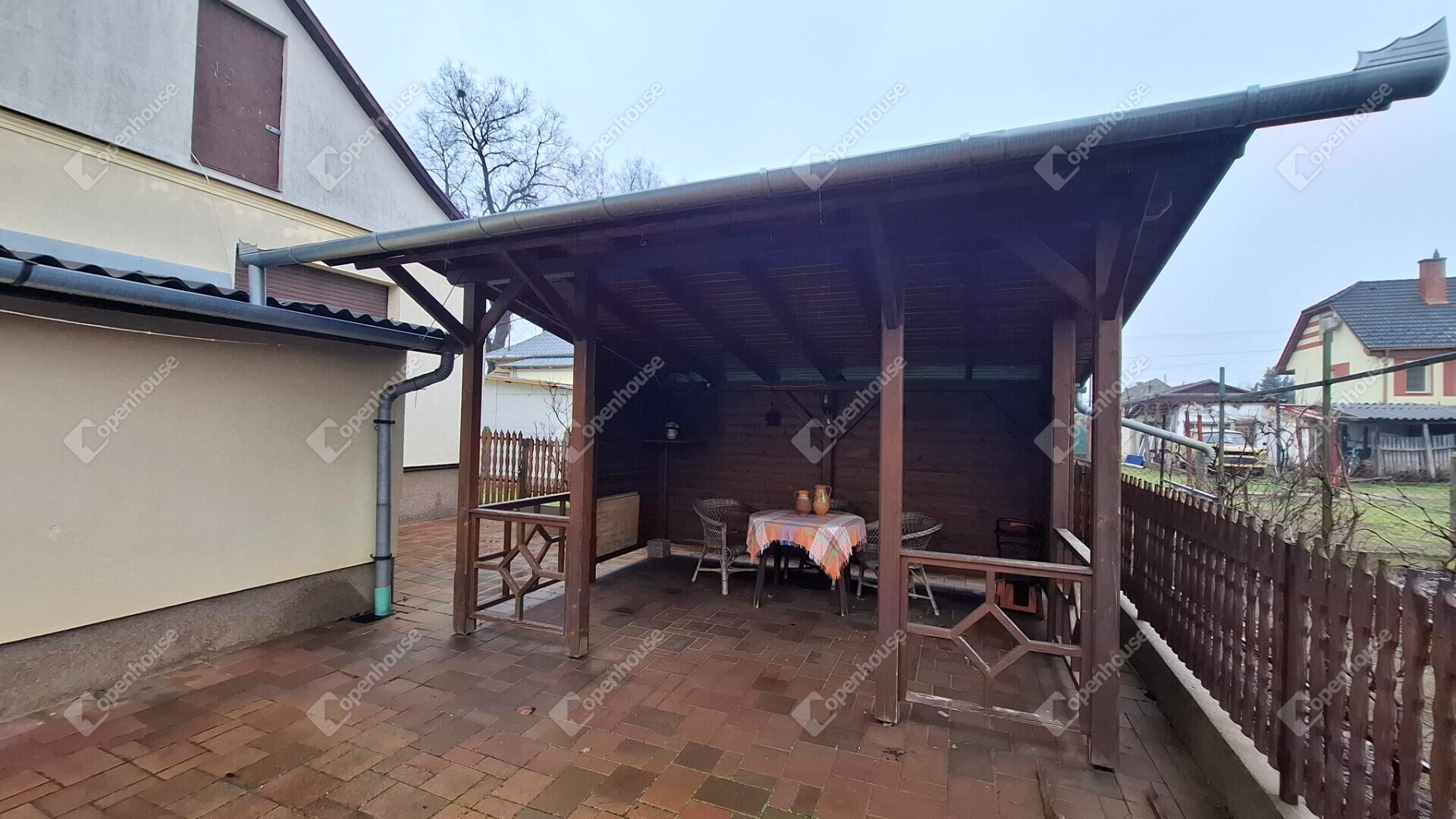 A családi ház első udvara térkövezett, több autó beállására megfelelő hely, összejövetelekre alkalmas hangulatos kis filagória is épült rajta.