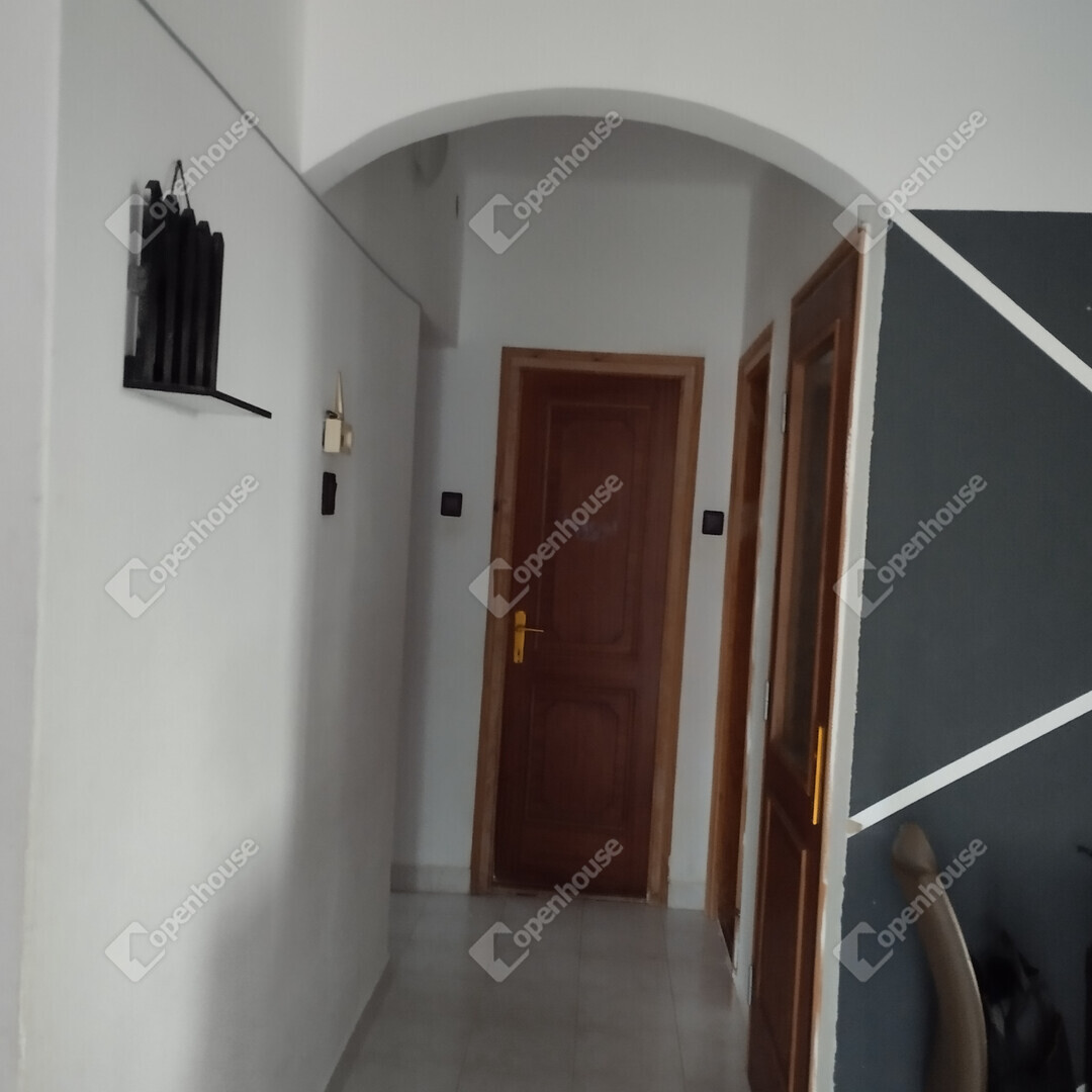 A lakásba belépve tágas nappaliba érkezünk. Innen nyílik a három külön nyíló szoba, konyha, fürdő, wc, éléskamra, a pince lejáró és a padlás feljáró.