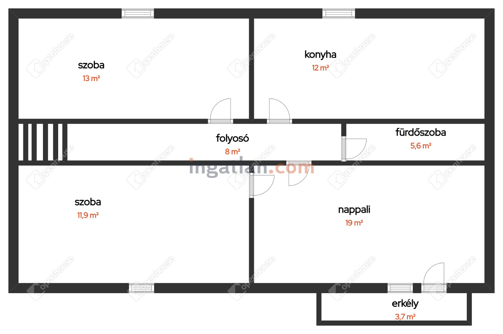 | Szoba | 13.00 m2 | Laminált padló |