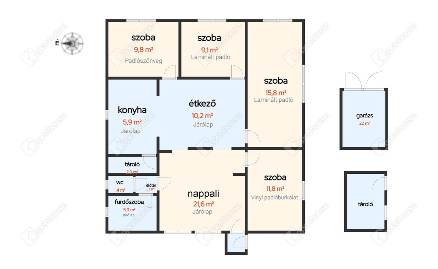 | Nappali | 21.00 m2 | Járólap |