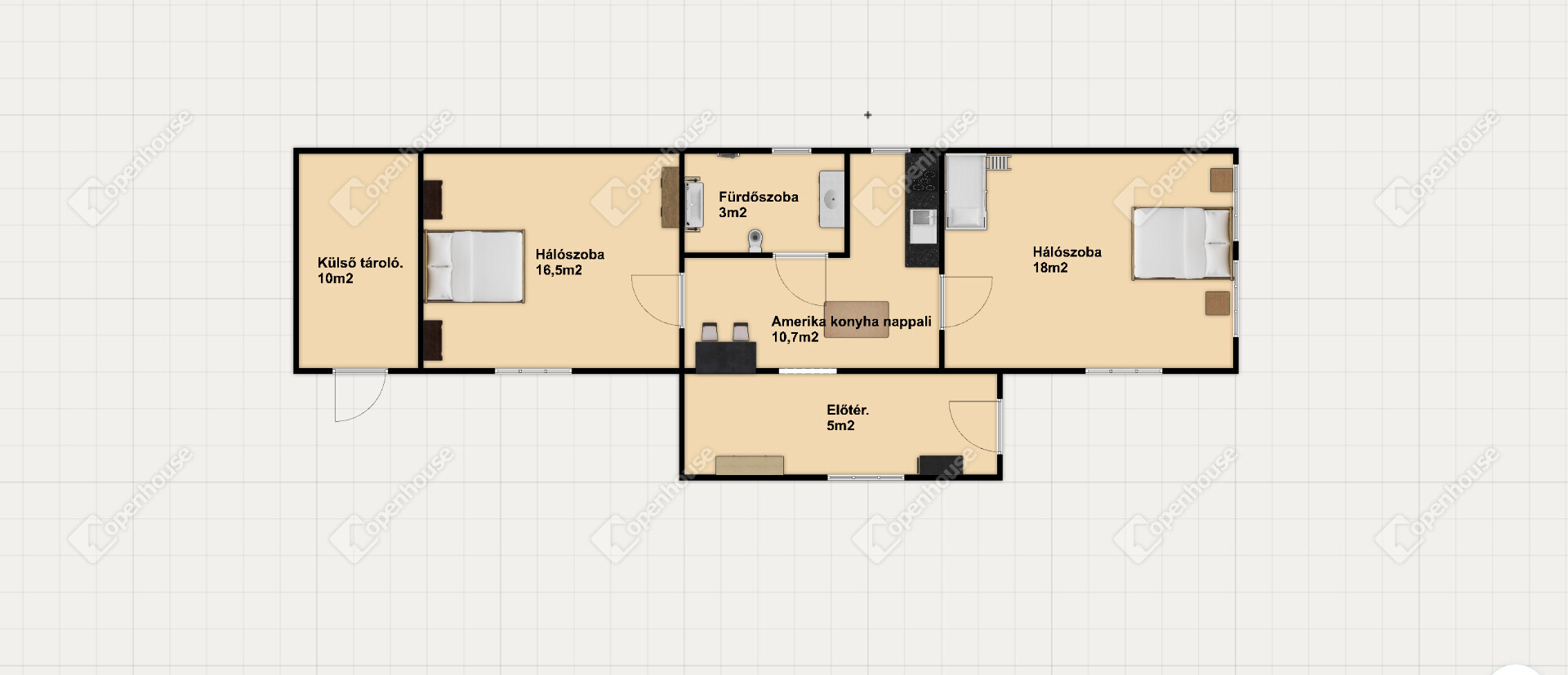 2 külön nyíló hálószoba
