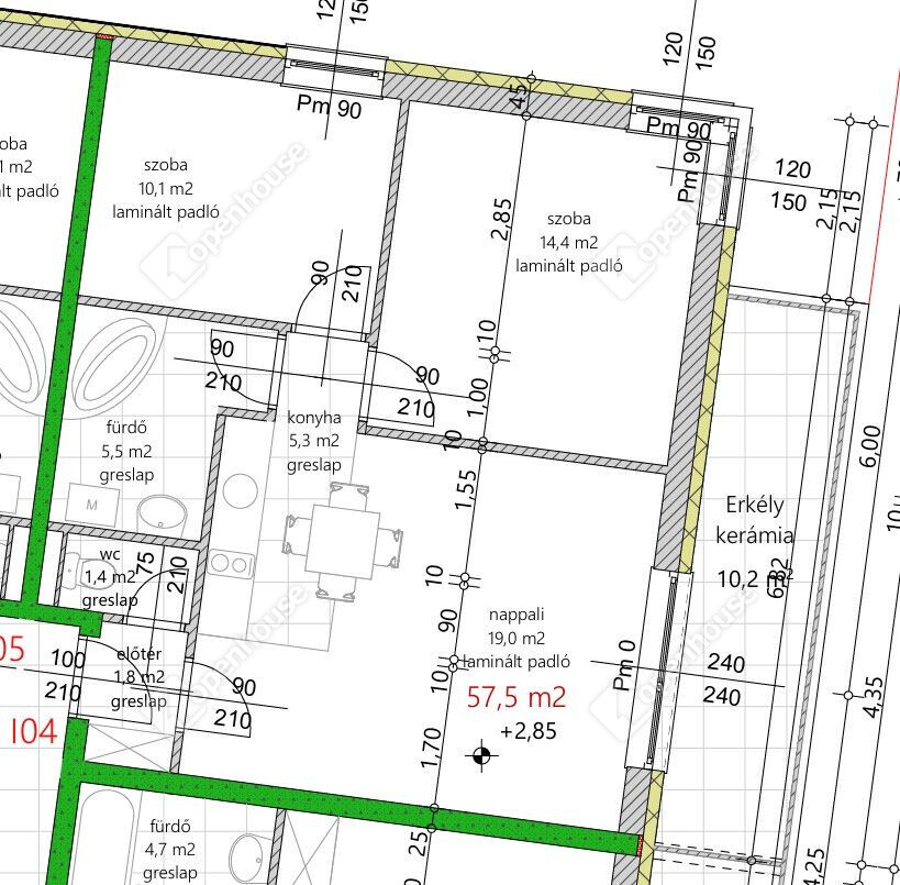 - I.E4-es lakás 57,5 m2 + 10,2 m2 erkély