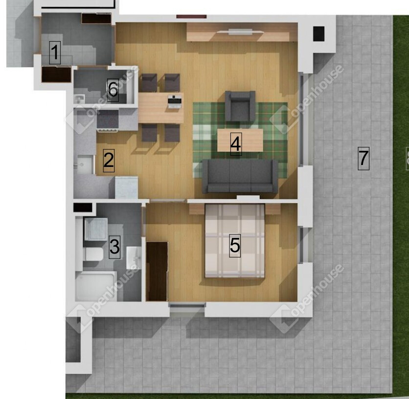 - 45 m2 alapterület, 32 m2 terasz és 70 m2 saját kert