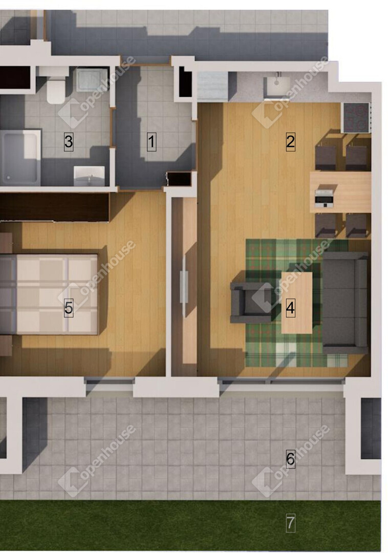 - 43 m2 alapterület, 13 m2 terasz és 28 m2 saját kert