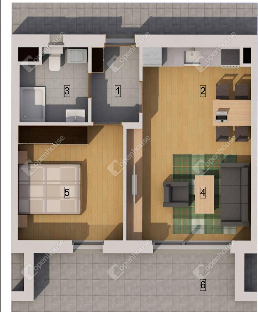 - 43 m2 alapterület, 13 m2 terasz és 28 m2 saját kert