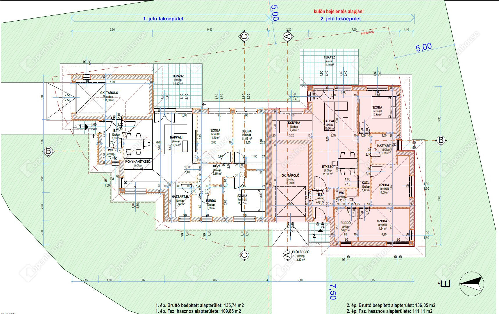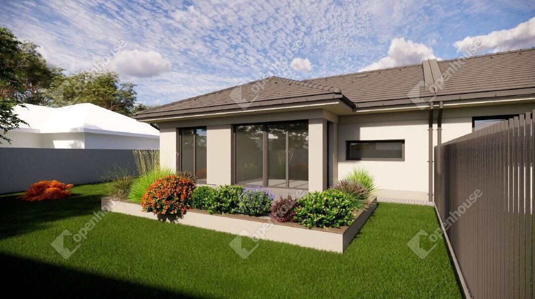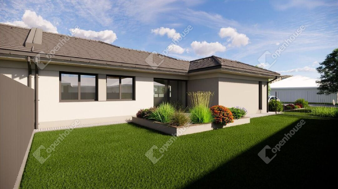 - A családi ház külső szerkezete modern, új építésű, 109,85 nm alapterülettel.