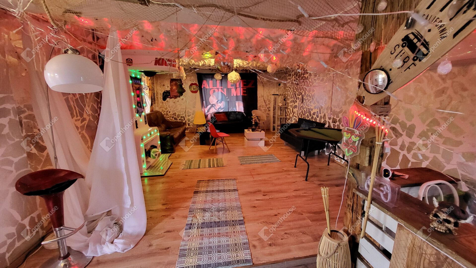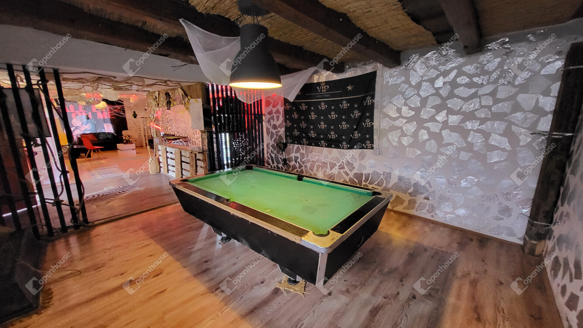 - korábban vendéglátóhely volt ezért egy légterű, most vendégtér, mosdó, bárpult és billiárdozási lehetőség van kialakítva