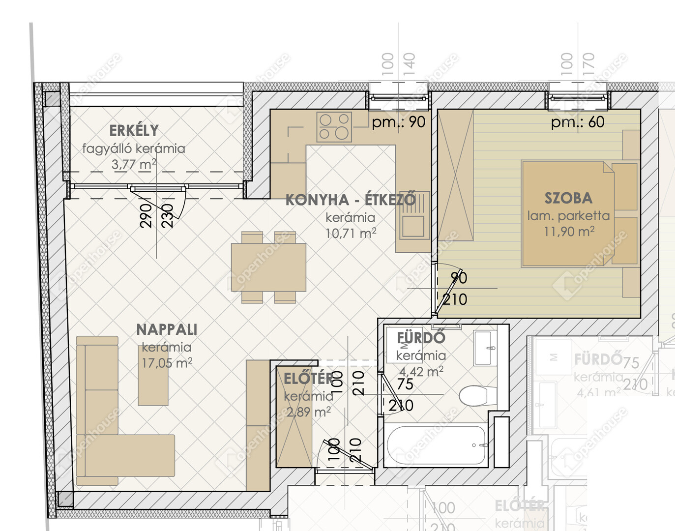 | Amerikai konyha | 10.71 m2 | Járólap |