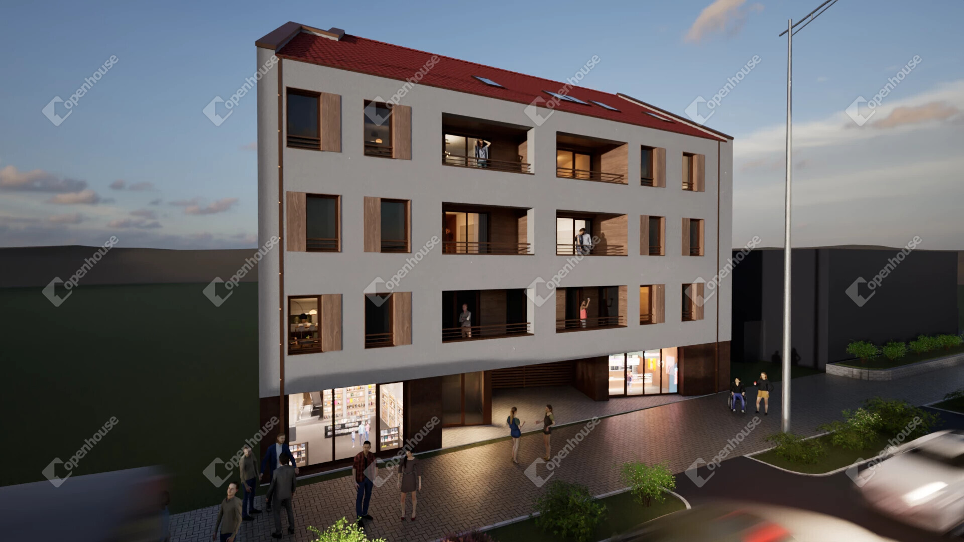A földszint + négy szintes, magastetős épület impozáns, mégis visszafogott megjelenésével harmonikusan illeszkedik a belvárosi környezetbe. Időtálló összhatását a gondosan megválasztott, minőségi anyaghasználat biztosítja. A földszinten 5 üzlethelyiség, valamint 29 férőhelyes fedett garázs kap helyet. Az emeleteken kialakított lakások mindegyikéhez erkély vagy terasz tartozik. Az épület két tömbre tagolódik, amelyek között zöld belső kert jön létre, mindkét tömb korszerű lifttel ellátott.