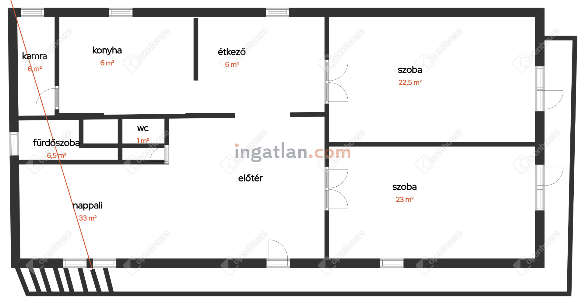 Szoba 1: 23 m2