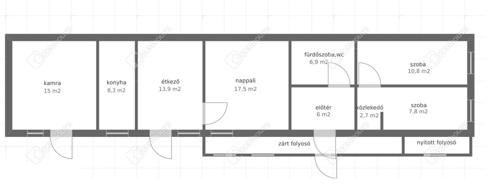 | Szoba | 7.80 m2 | Laminált padló |