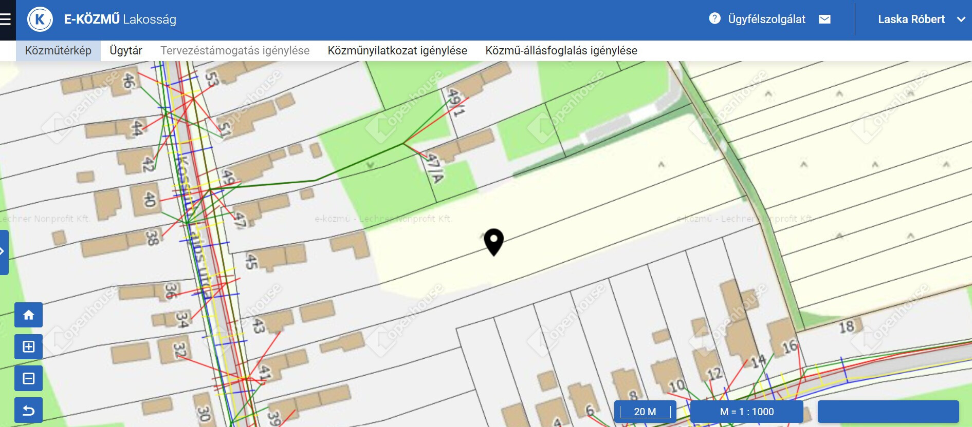 Víz, villany (1 fázis, 16 A), csatorna a házban
