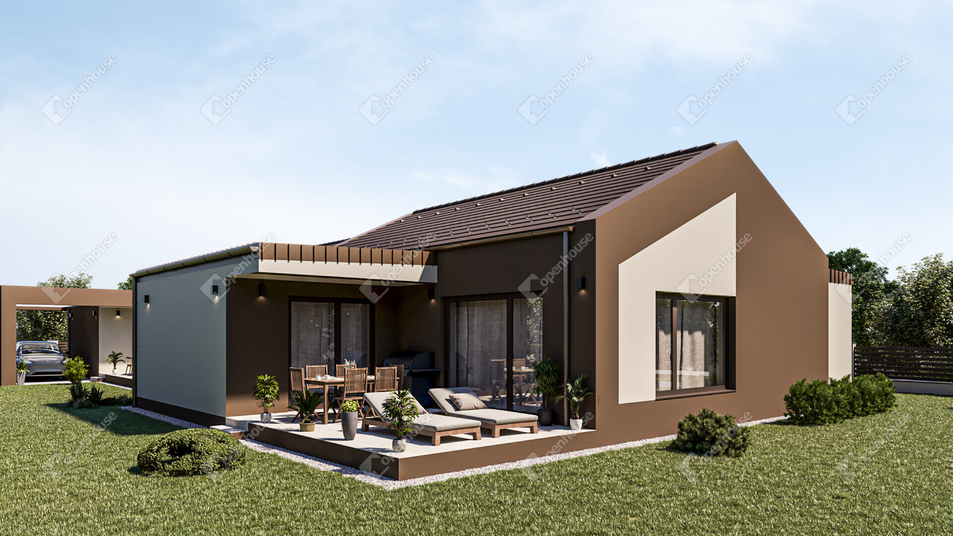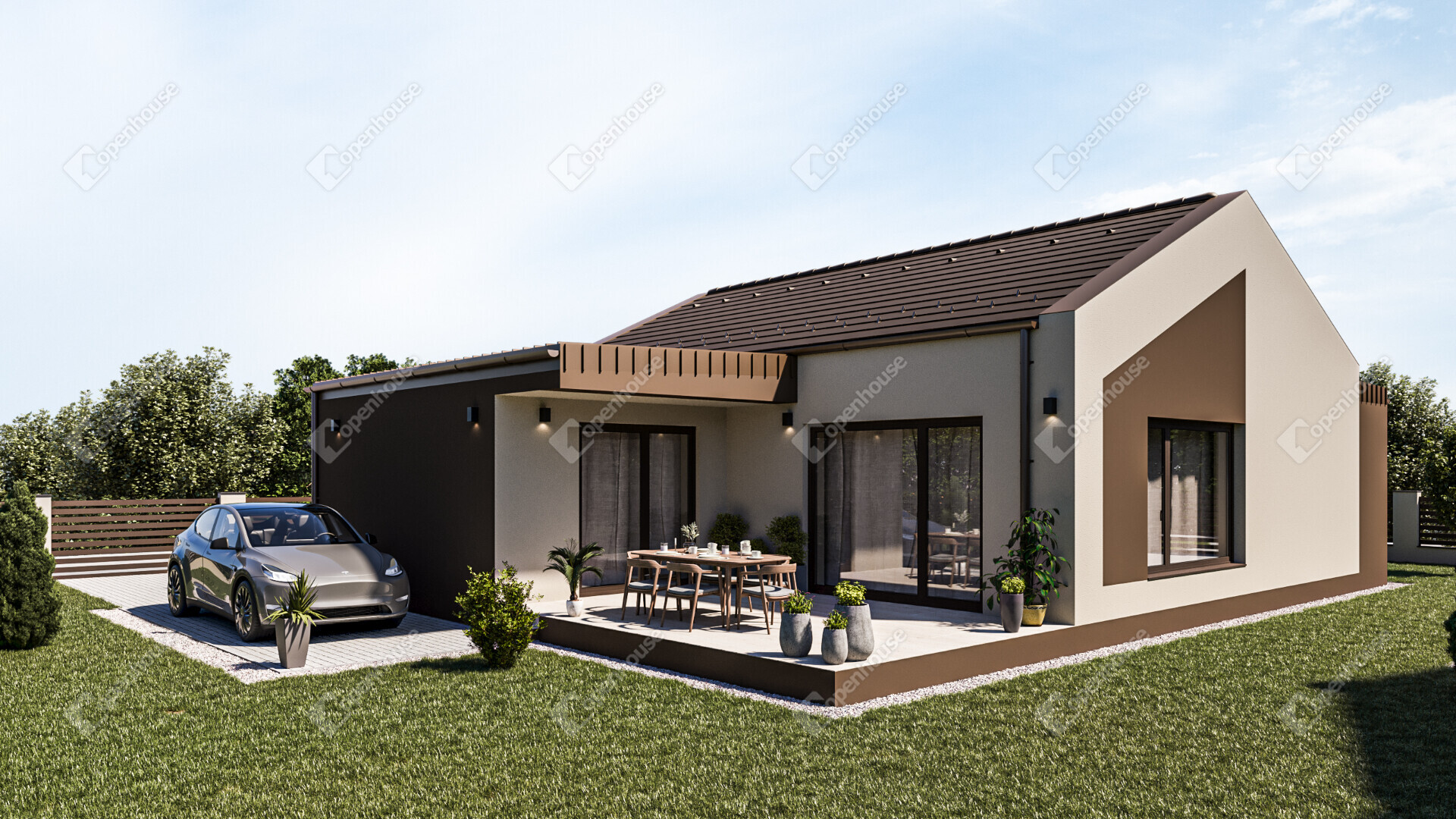 AZ INGATLANRÓL: Az ingatlan minőségi alapanyagok felhasználásával és a modern technológia alkalmazásával készül, a lehető legmagasabb színvonalon, modern megjelenéssel. A nettó alapterület 105,32 m2, ami magába foglal egy hatalmas amerikai konyhás nappalit, 3 hálószobát, 2 fürdőszobát WC-vel,, egy gardróbot, egy kamrát és egy háztartási helyiséget. Továbbá az ingatlanhoz tartozik egy 21,23 m2-es terasz, és egy saját használatú 537 m2-es telek is.
