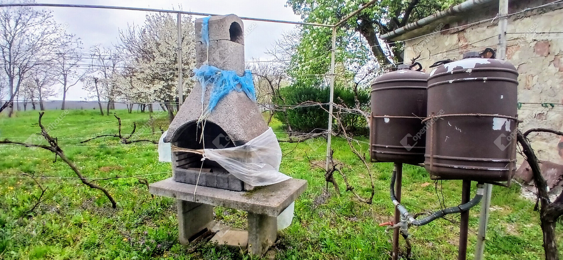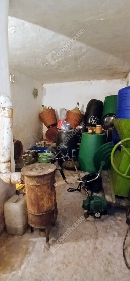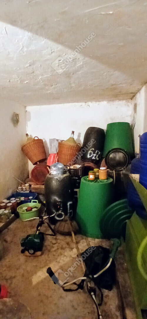 A telken egy masszív, tégla építésű pince található, amely egy szobából és egy kis konyhából áll,amelyben tűzhely is található. így akár hétvégi házként is kényelmesen használható. Az épületben villany bevezetésre került, a fűtésről gázpalackról működtethető konvektor gondoskodik, de kályha is találhatóa hidegebb napokra. A ház alatt száraz pince húzódik, amely kiváló tárolásra vagy borospince kialakítására.