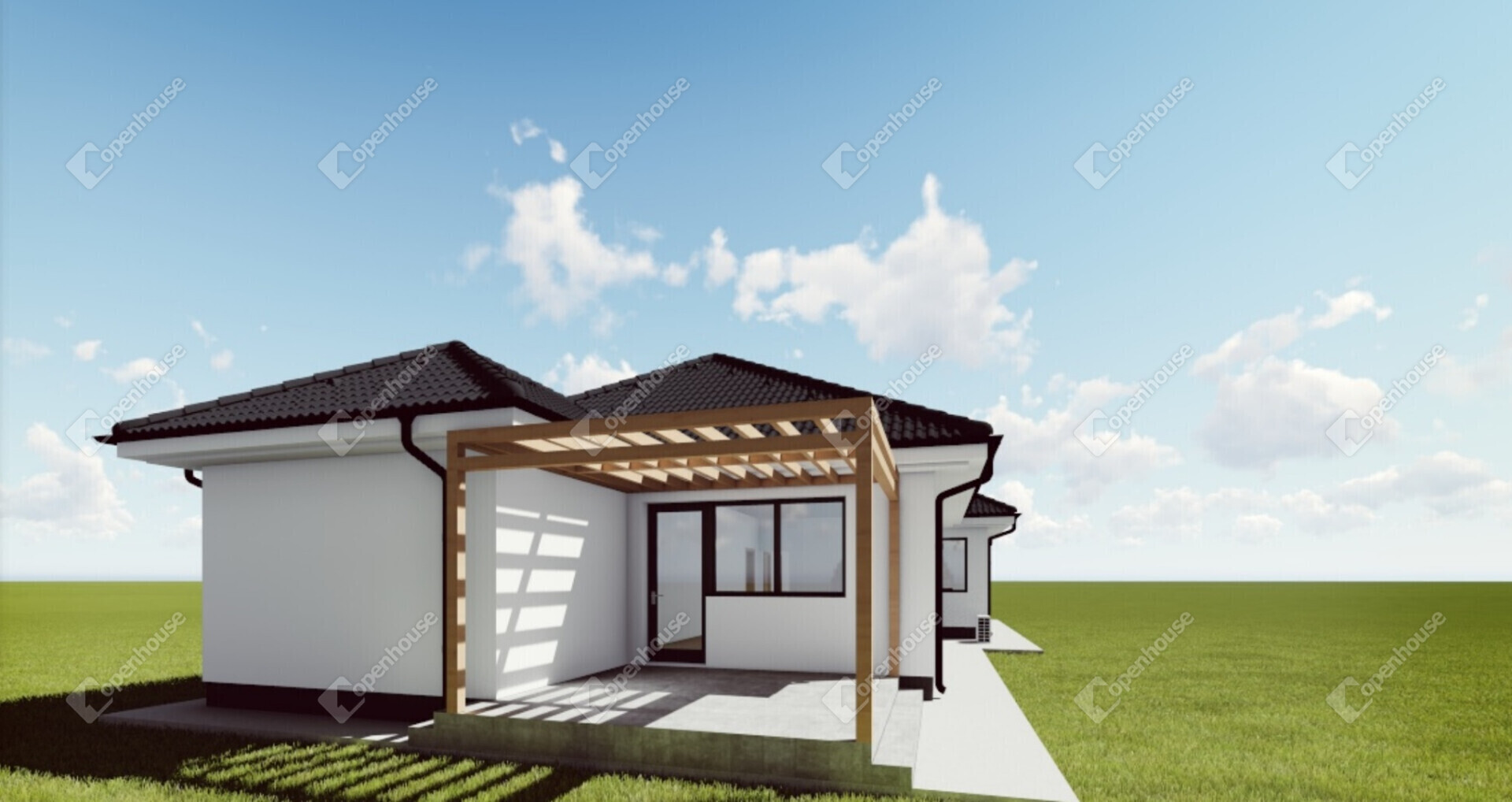 A vételár tartalmazza a térkövezést és a kerítés építését is, így a ház teljesen kész állapotban kerül átadásra.