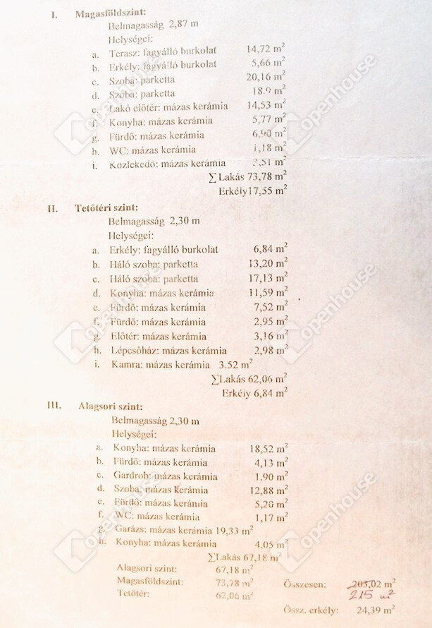 Három külön bejáratú lakrész, összesen 203 m² lakótér + teraszok, erkélyek