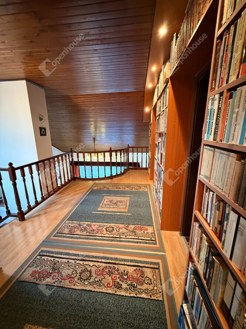 A felső szintre a gyönyörűen kialakított kényelmes fa lépcsőn jutunk fel. Az emeleten 3 szoba és egy wc-s fürdőszobát alakítottak ki.