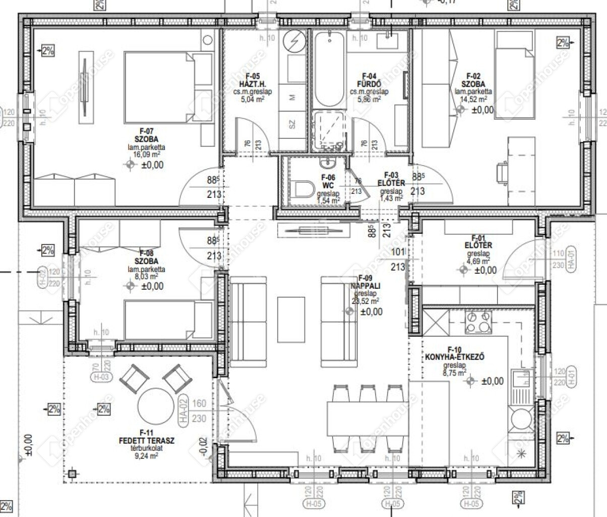 | Közlekedő | 4.00 m2 | Laminált padló |