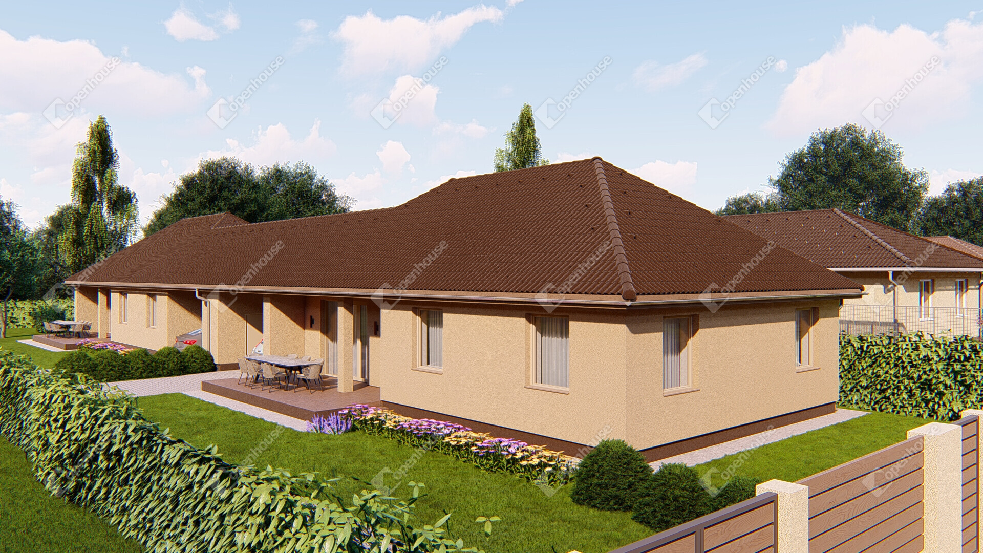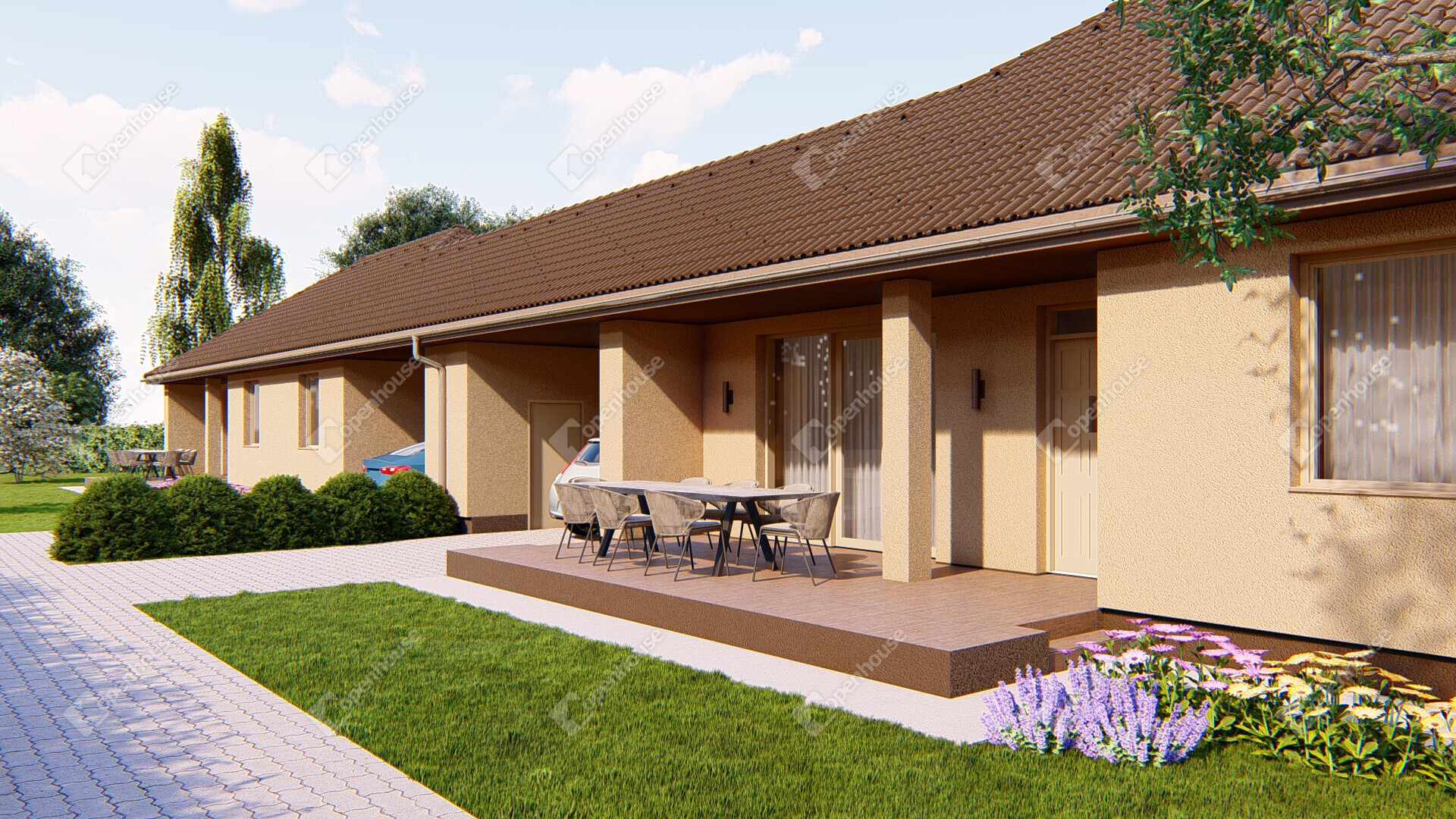 Az ingatlan hasznos alapterülete 91,38 m2, terasz 21.44m2 ,(21,42m2) gépkocsitároló és kerti tároló 3.58m2. Csendes aszfaltozott utcában van a házikó, a környékben bevásárlási lehetőség, buszmegálló, bölcsőde 10 perc sétán belül. 3 hálószoba, egy hatalmas amerikakonyhás nappali, fürdőszoba + gépészeti helyiség és egy plusz zuhanyzó is megtalálható az lakásban. Saját kert 330 m2.