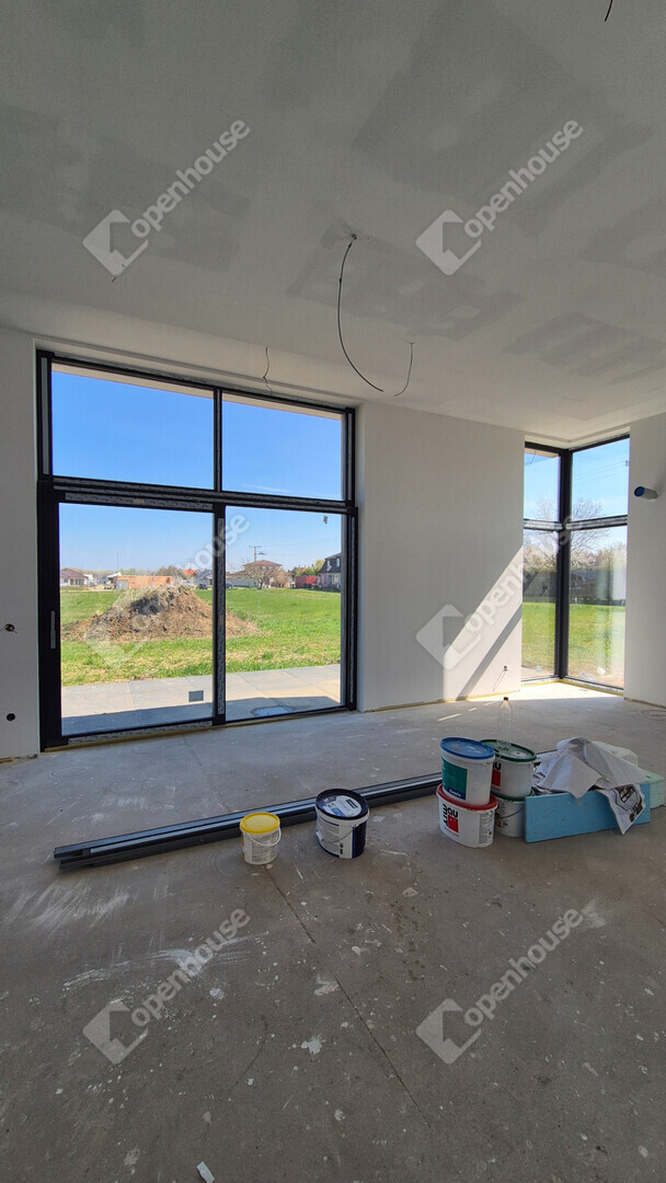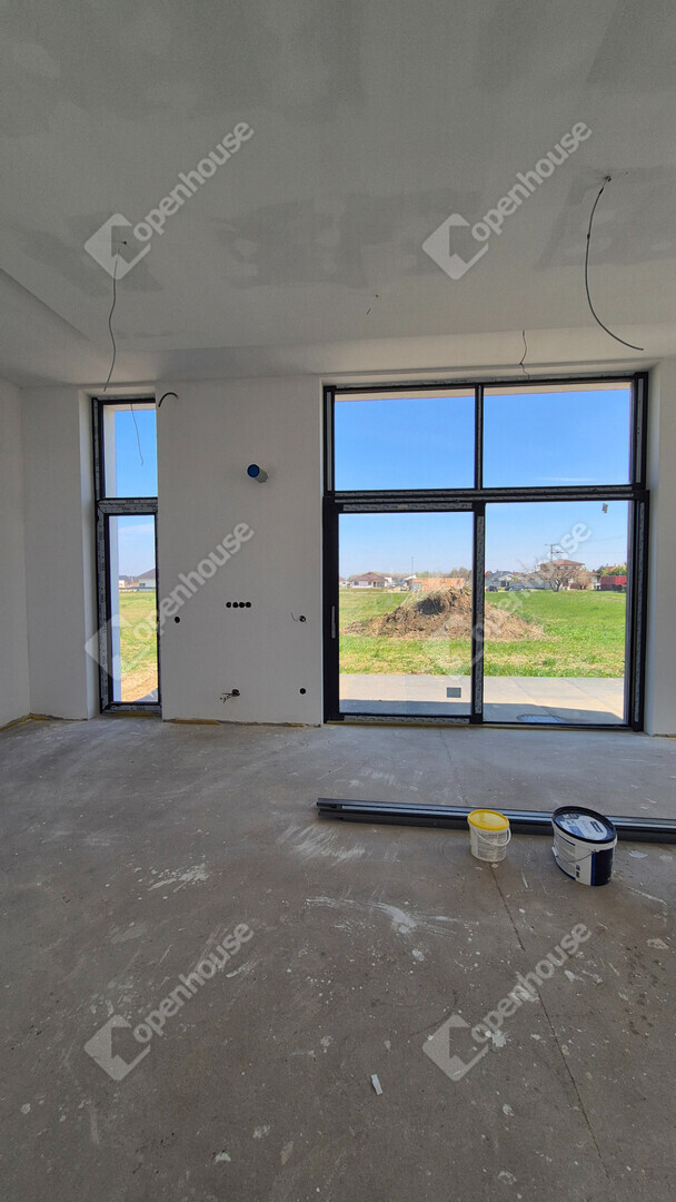 Győrújbarát egyik legcsendesebb, újépítésű övezetében, egy forgalomtól elzárt zsákutcában épül ez a bruttó 171 m²-es, modern családi ház, amely 744 m²-es telken helyezkedik el.
