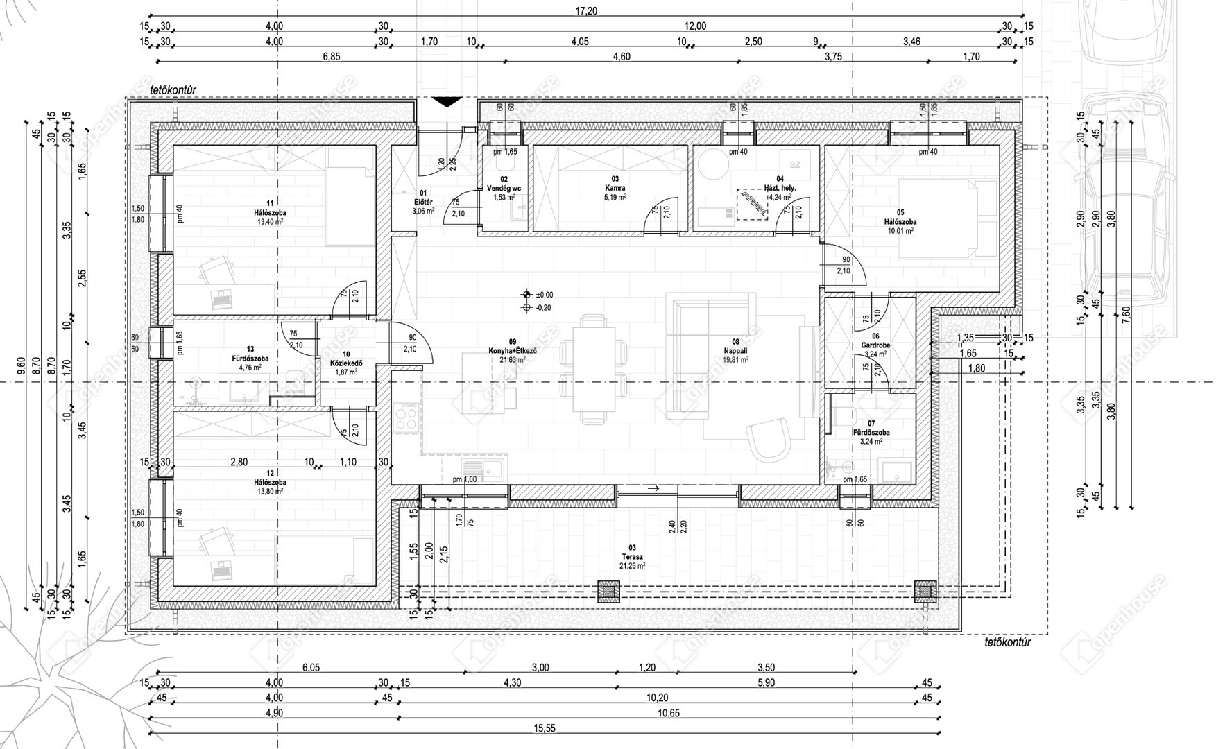 | Nappali | 21.68 m2 | Laminált padló |