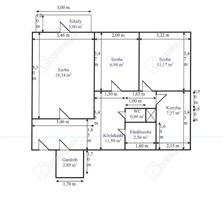 | Erkély | 3.00 m2 | Járólap |