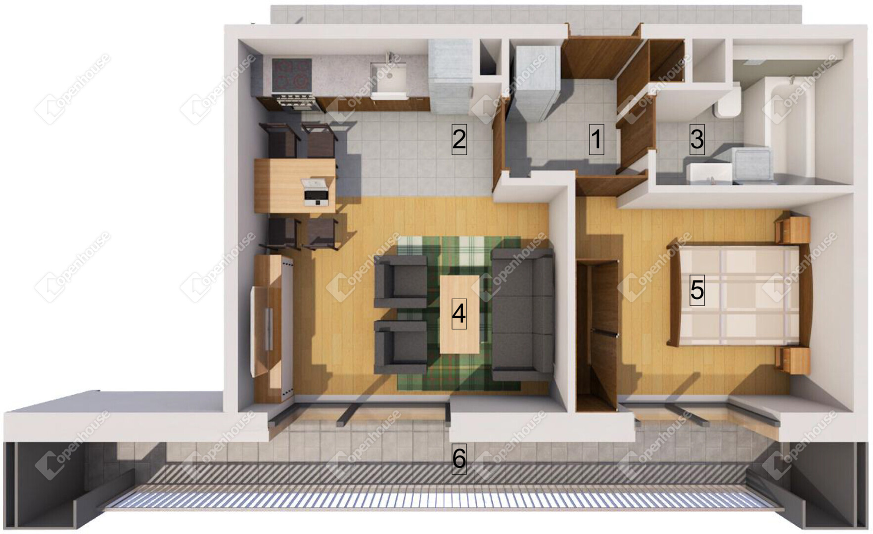| Amerikai konyha | 26.00 m2 | Járólap |