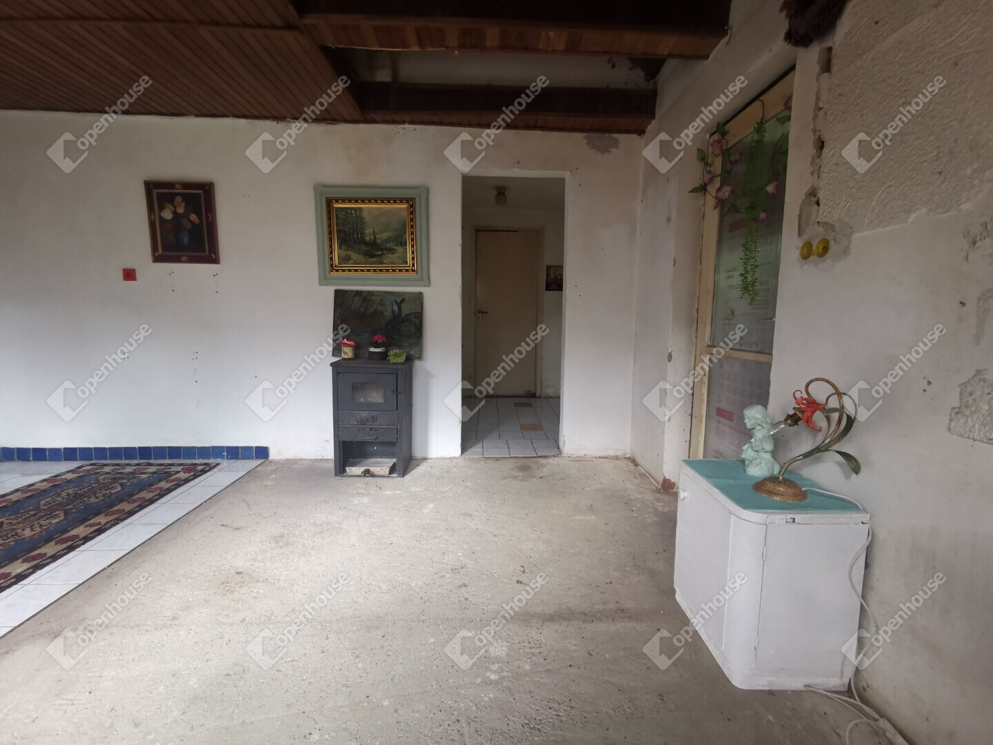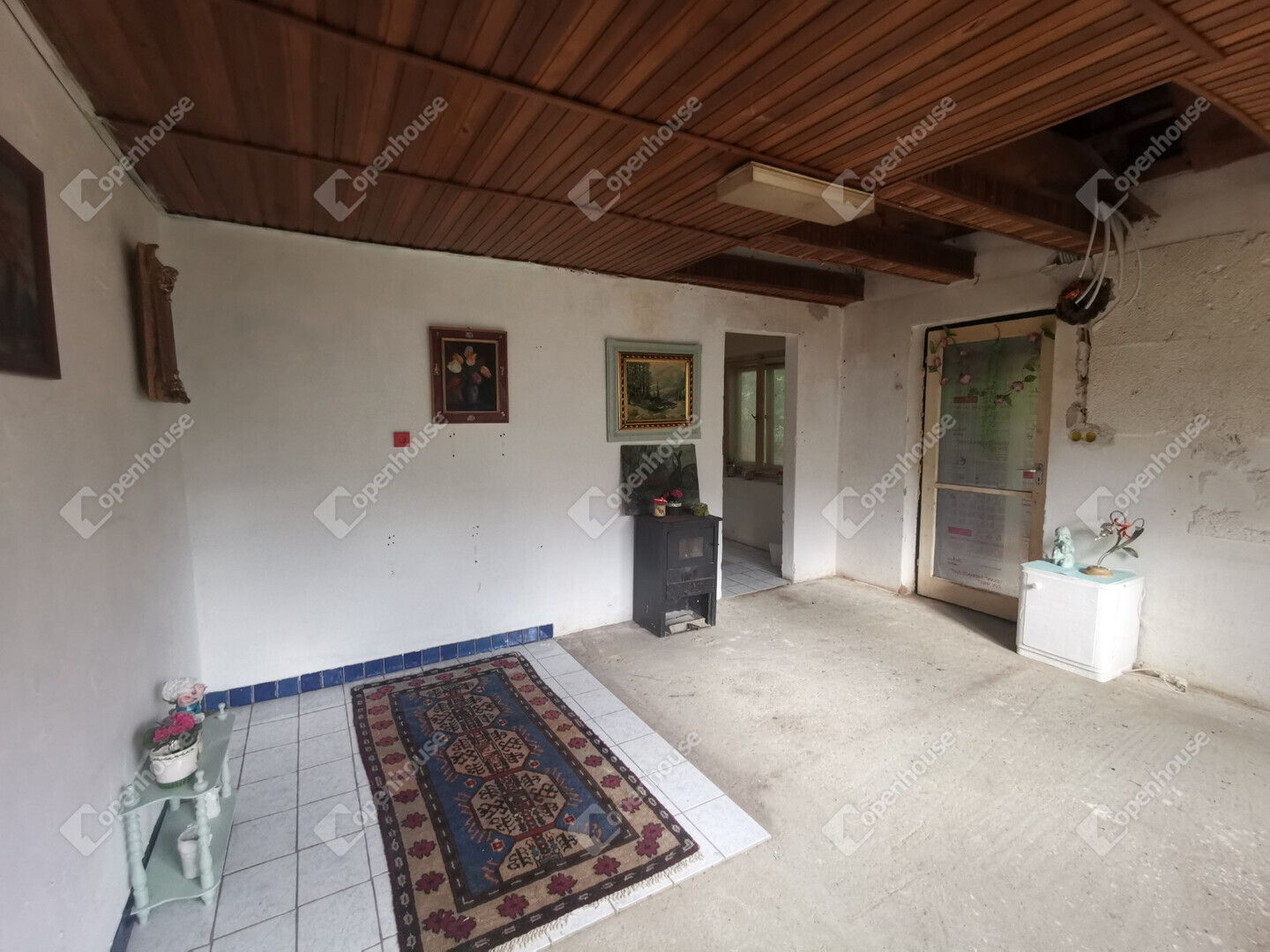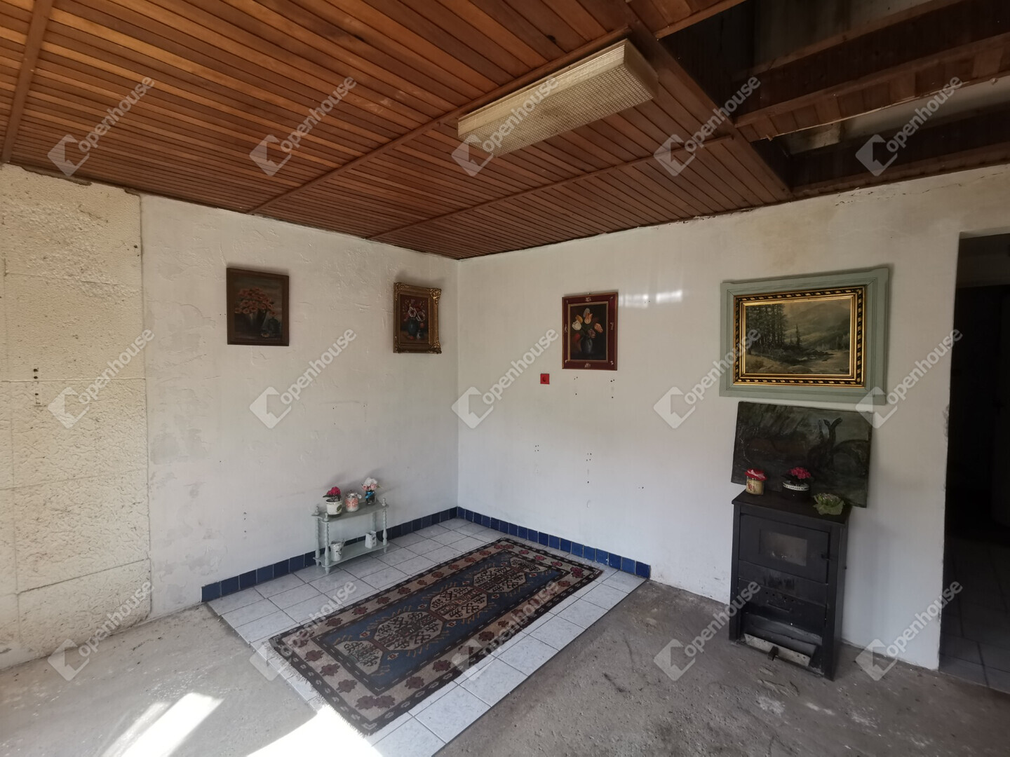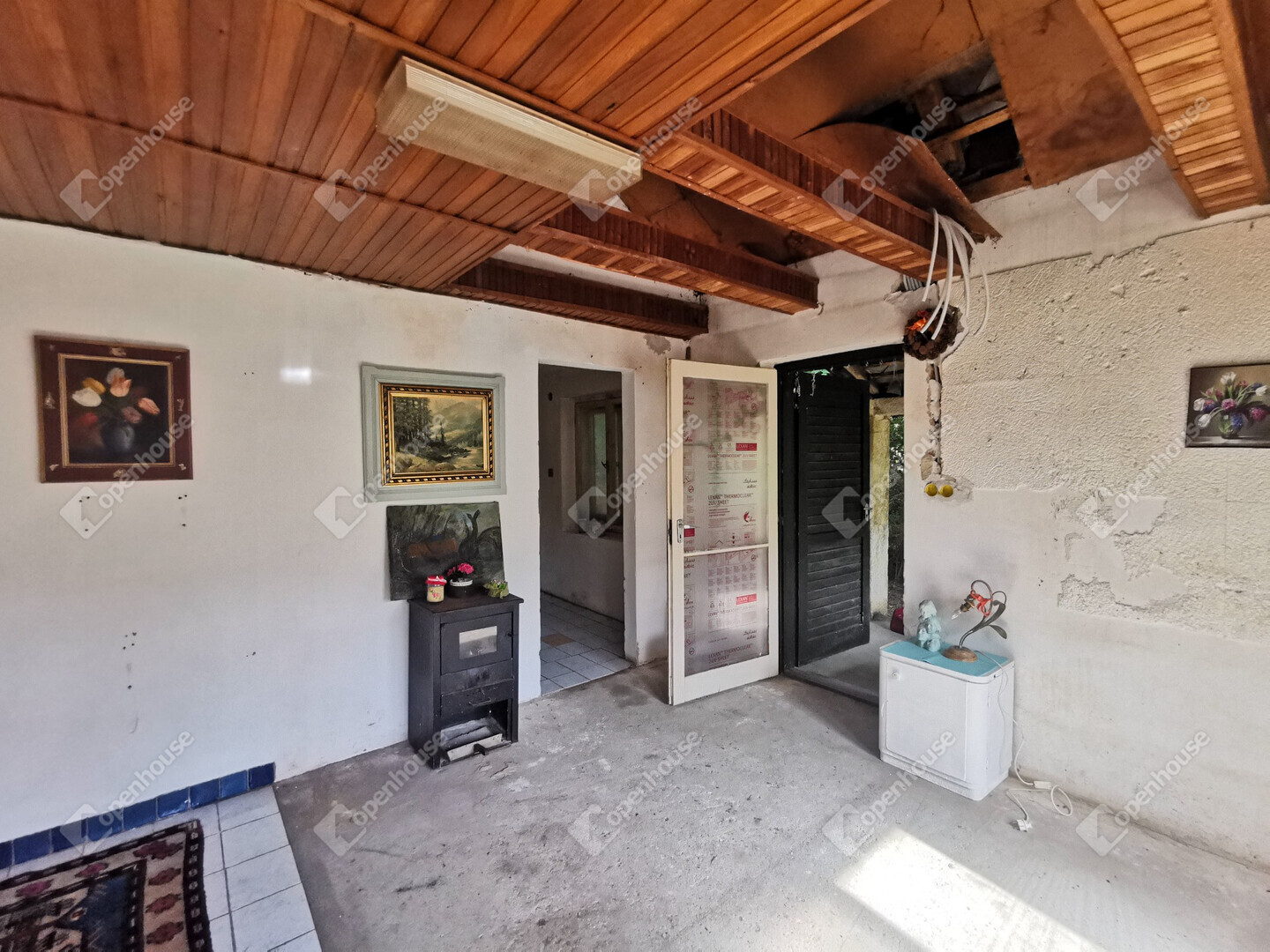 Tégla falazat, pala tető, kályha fűtés.