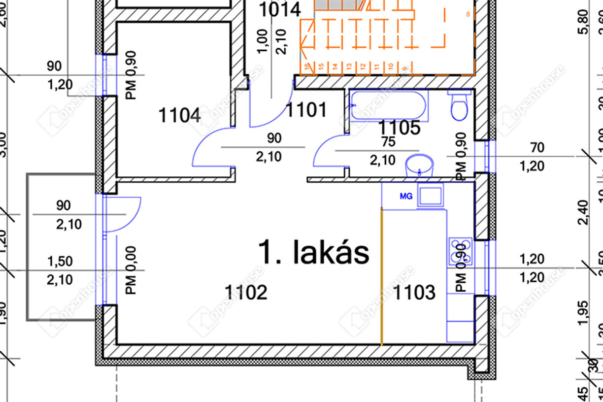 A hirdetésben látható lakás az első tömb, első emeletén található, nettó 44,69 m2, erkély 5 m2. Déli tájolású, nappali-konyha-étkező, egy hálószoba, fürdőszoba elosztású.
