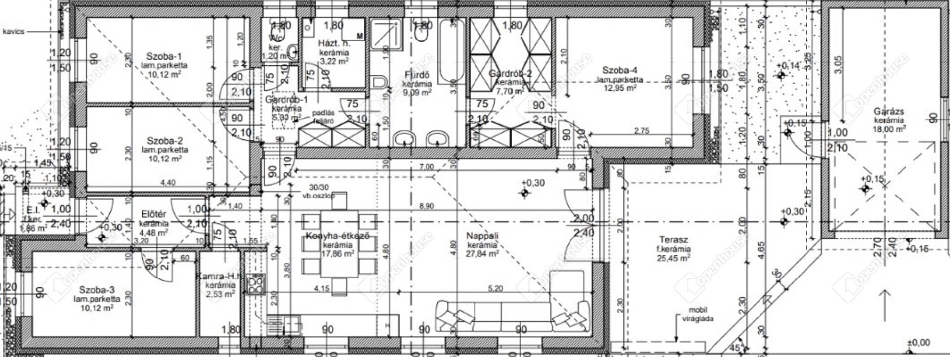 - A 18 m²-es garázs automata, motoros kapuval felszerelt.