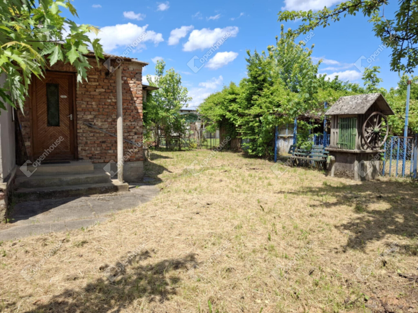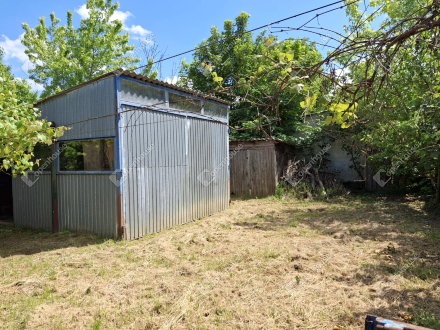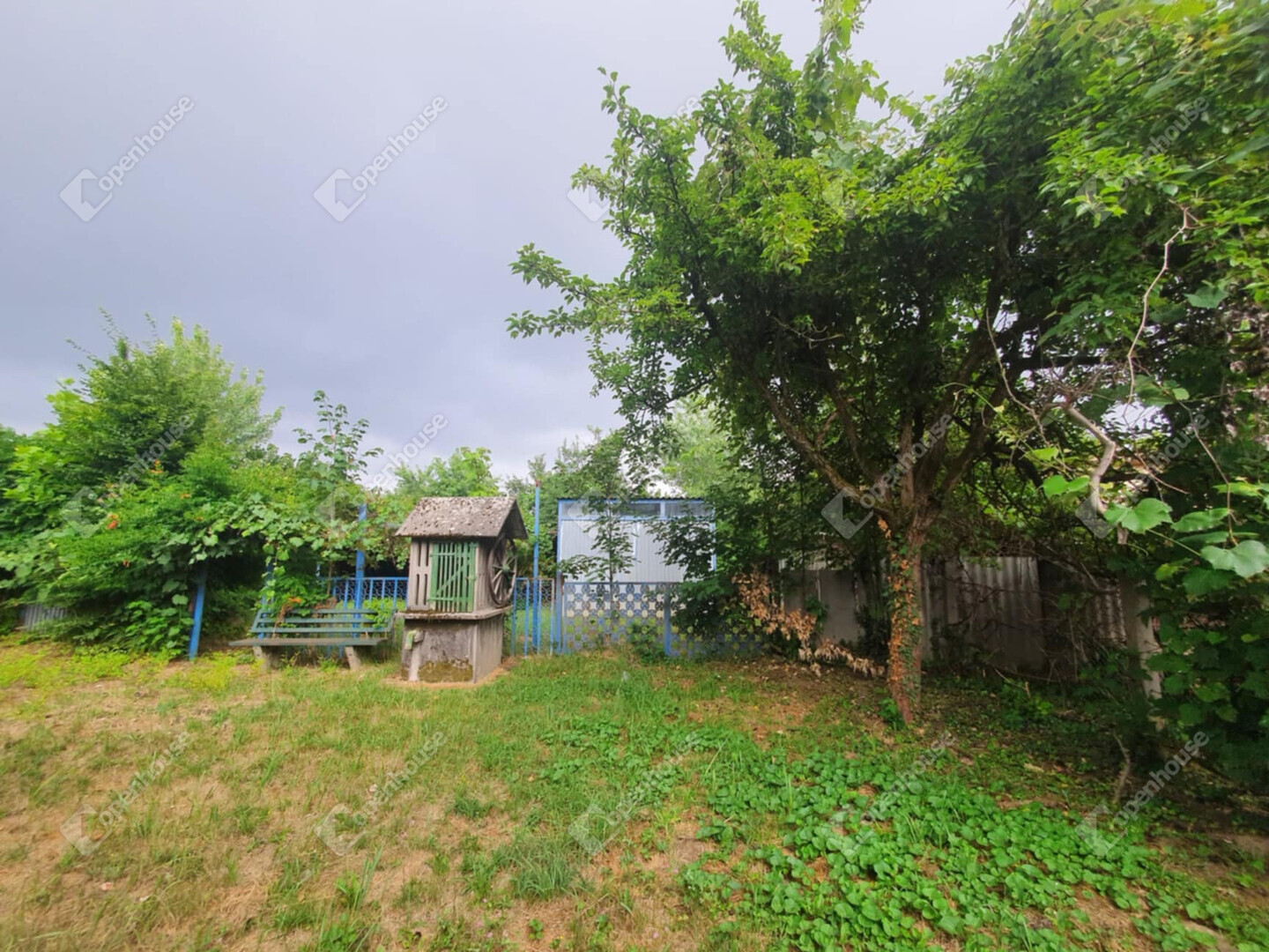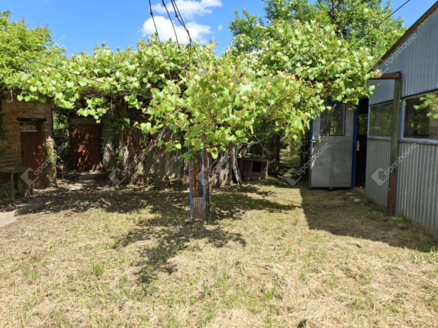 – Hátsó kert: gondozott zöldterület gyümölcsfákkal és szőlővel beültetve.
