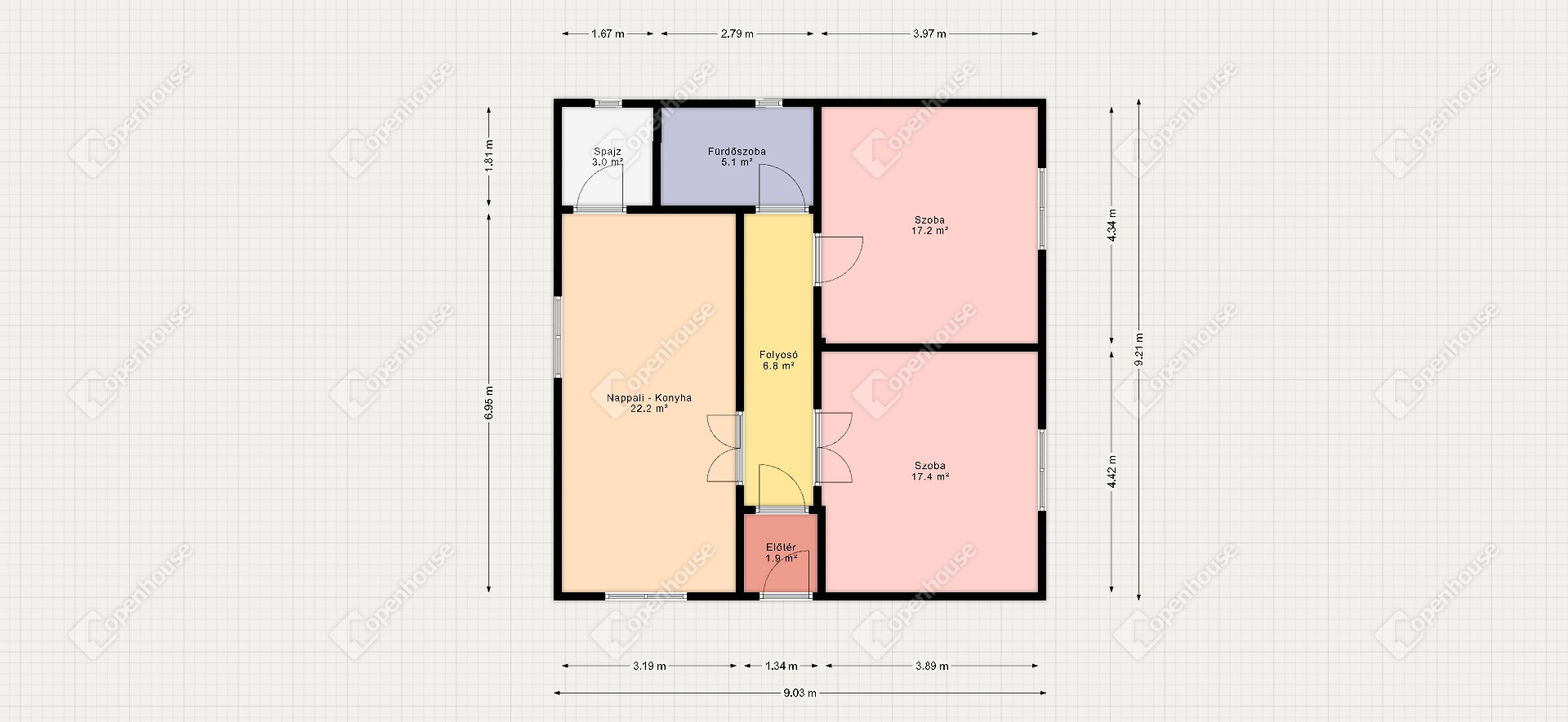 | Háztartási helyiség | 3.00 m2 | Járólap |