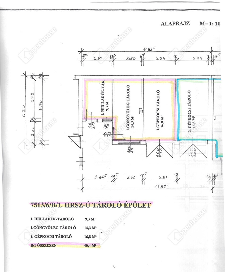 Melléképületek: garázs, kocsibeálló, 2 tároló (összesen 40 m²)