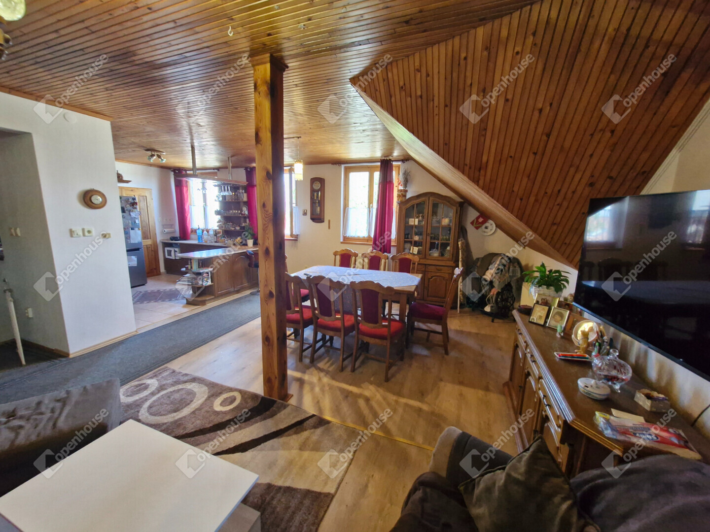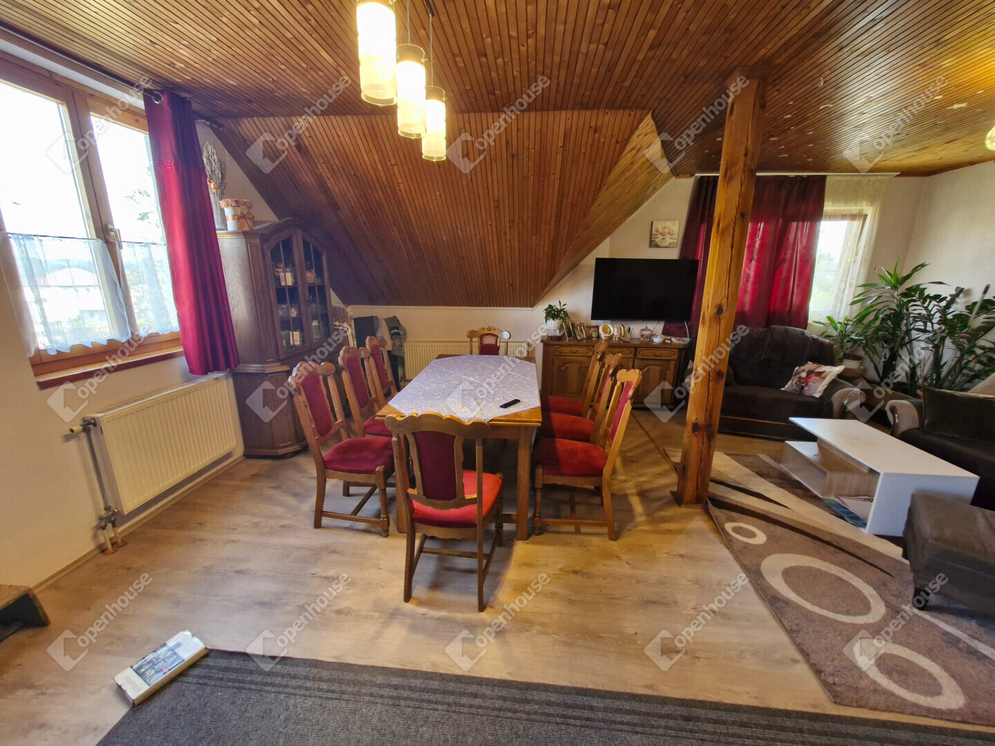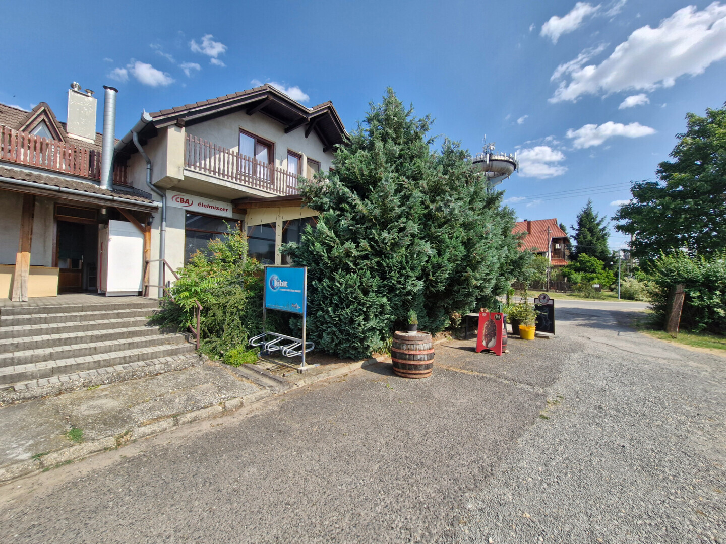 Az épület egy 4 egységes társasház része, melynek 2 egysége kerül értékesítésre – csomagban egy bejáratott, működő vendéglővel a földszinten és egy tágas, panorámás tetőtéri lakással.