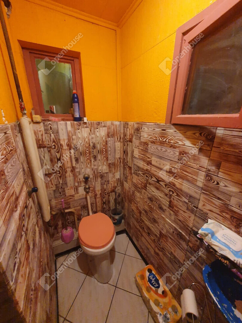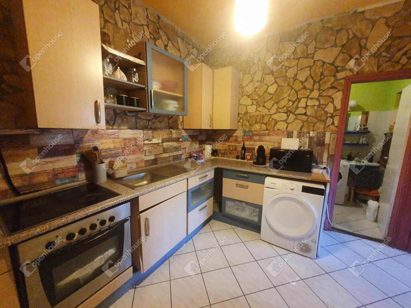 A 63 m²-es, tégla falazatú családi házban 2,5 szoba, konyha-étkező, nappali, fürdőszoba és külön WC kapott helyet. A fűtésről központi fűtés fa tüzelésű kazánnal, valamint egy hagyományos cserépkályha gondoskodik. A műanyag nyílászárók redőnnyel szereltek. Az elektromos hálózatot 7 éve teljes körűen felújították, a ház statikai megerősítése (alávasalása) szintén megtörtént. A tető héjazata pala.