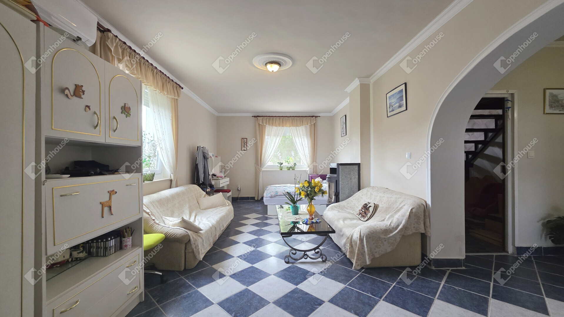 - a nappaliban és az emeleten egy szobában pár éves műanyag ablakok találhatók, a többi helyiségben hő- és hangszigetelt fa nyílászárók, mindenhol redőnnyel