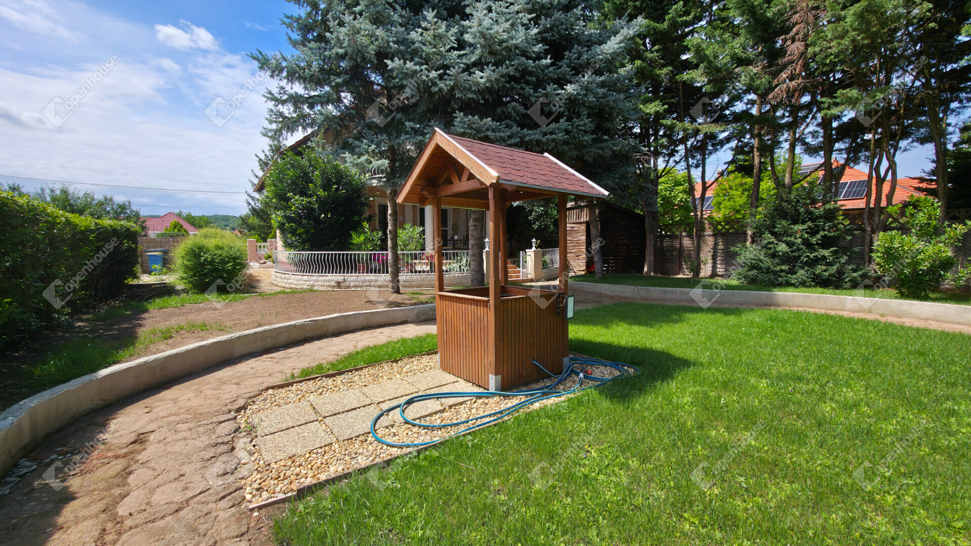 - a 778 m²-es telek parkosított kerttel, fúrt kúttal, fatárolóval és szalonnasütővel rendelkezik; teljesen körbekerített, végig növényzettel
