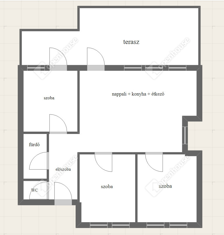 - A lakásban található egy előszoba, nappali + 3 szoba, konyha, fürdőszoba WC-vel és külön WC